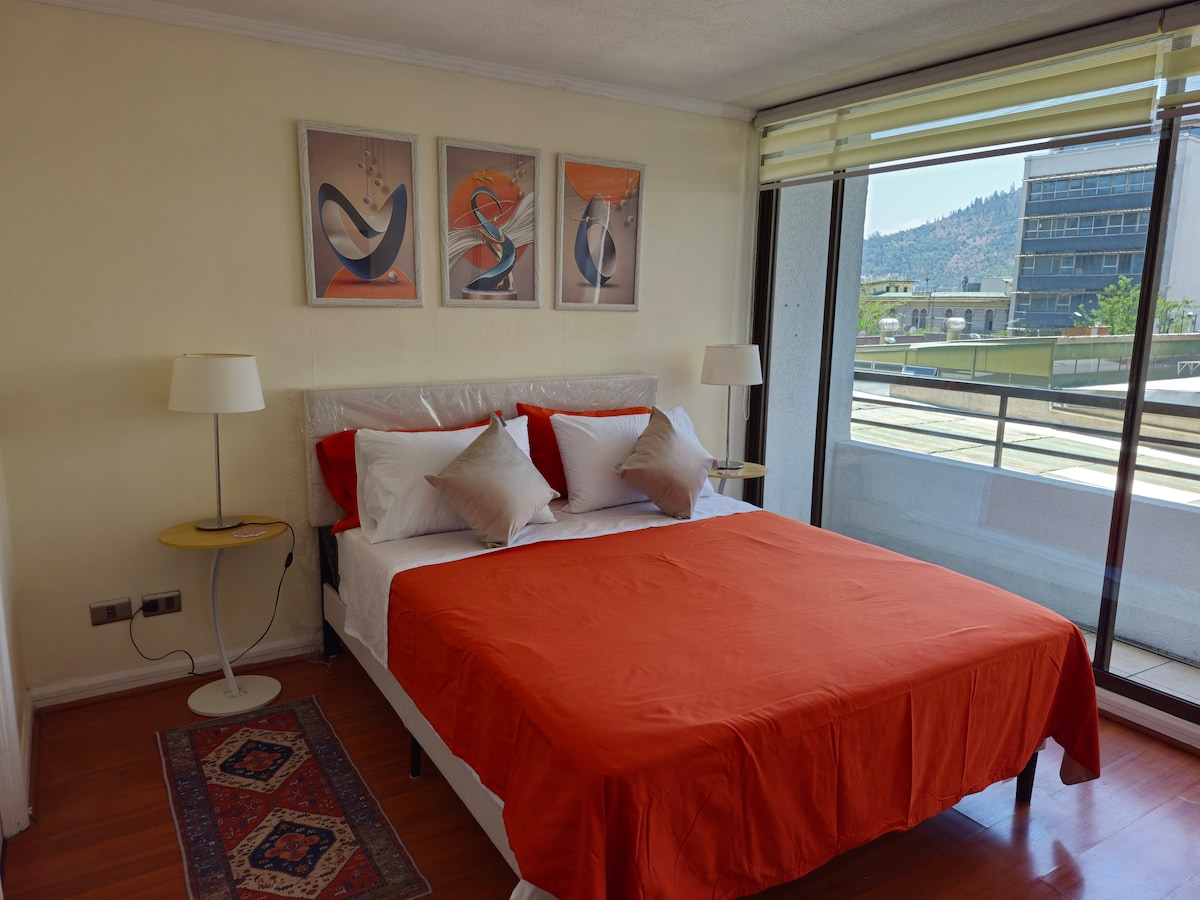 Confortable departamento ubicado en el corazón del barrio cívico. Cerca de museos, restaurantes, bares y entretención. Comfortable apartment located in the heart of the civic district. Close to museums, restaurants, bars and entertainment. It has the best connectivity with 2 metro stations just blocks away, buses to approach Santiago Airport and tourist centers with hiring services to iconic places of the city.