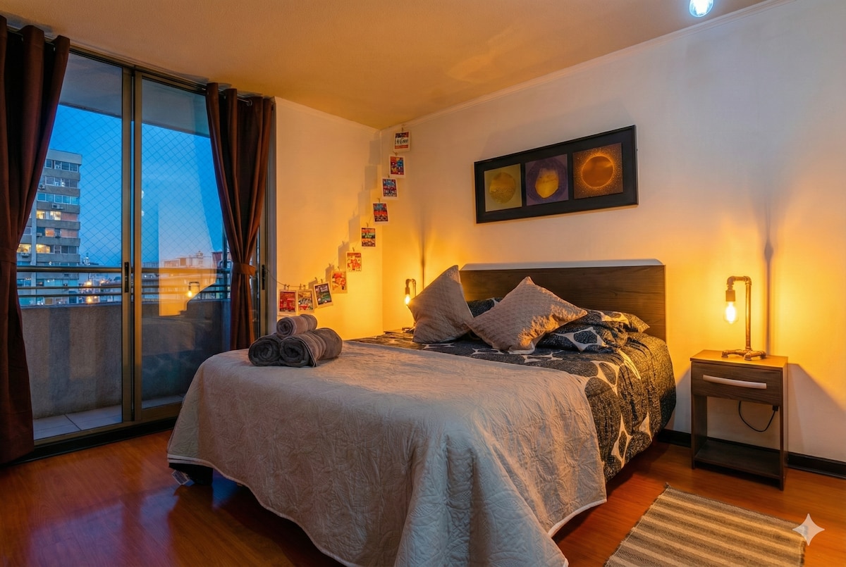 Vive Santiago desde el corazón histórico de la ciudad. Estarás a pasos de la historia y la cultura de la capital chilena: camina unos minutos y podrás visitar el Palacio La Moneda, la Plaza de Armas, la Catedral y los principales Museos capitalinos. Por la noche, disfruta de una agradable vista de la ciudad desde tu propio balcón. Ideal para turistas y viajes de negocios que buscan un lugar céntrico y bien conectado para explorar Santiago.