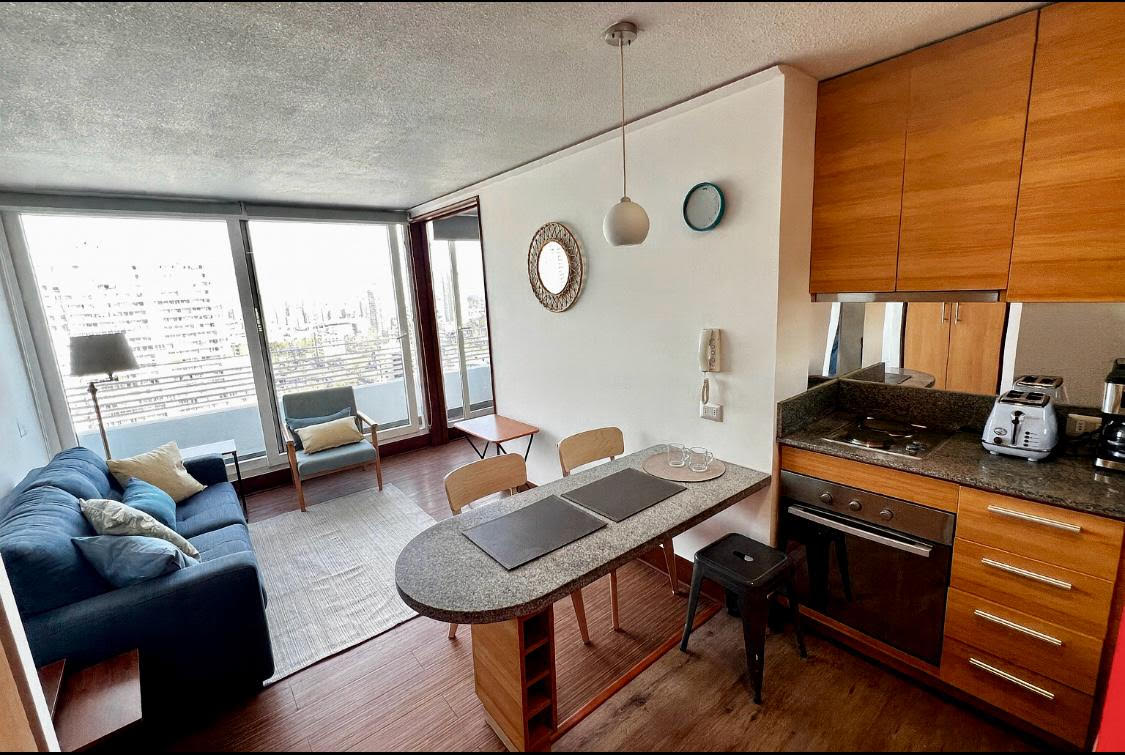 We own this centrally located one-bedroom apartment in a safe, modern doorman building. After falling in love with its prime location and high-floor view, we purchased and meticulously renovated the unit. The apartment is in the heart of the hip Bellas Artes district, just a block and a half from the Bellas Artes metro station. Adjacent to the building are a supermarket and a nice café. Within a short walk, you'll find great restaurants, shopping, and Santiago's top tourist attractions.