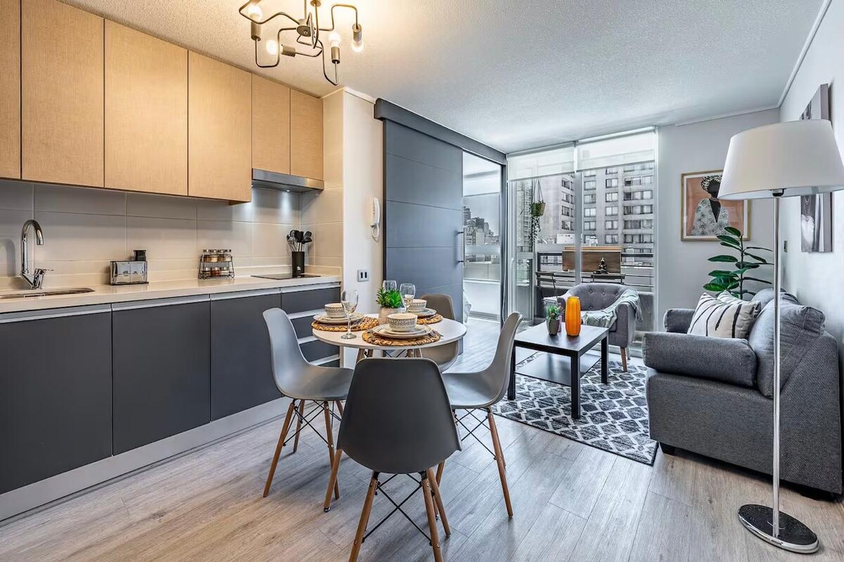 Welcome! Enjoy your stay in a brand-new apartment, designed for you to relax after a day exploring the city. Located in the heart of Santiago, you'll be steps from the subway, buses, shops, restaurants, museums, and the best views of the city. Paseo Bulnes, Almagro Park, La Moneda, Cerro Santa Lucía, Lastarria/Barrio Italia. It has everything you need: a comfortable bed, a fully-equipped kitchen, Wi-Fi, and plenty of amenities. Everything you need to explore Santiago!