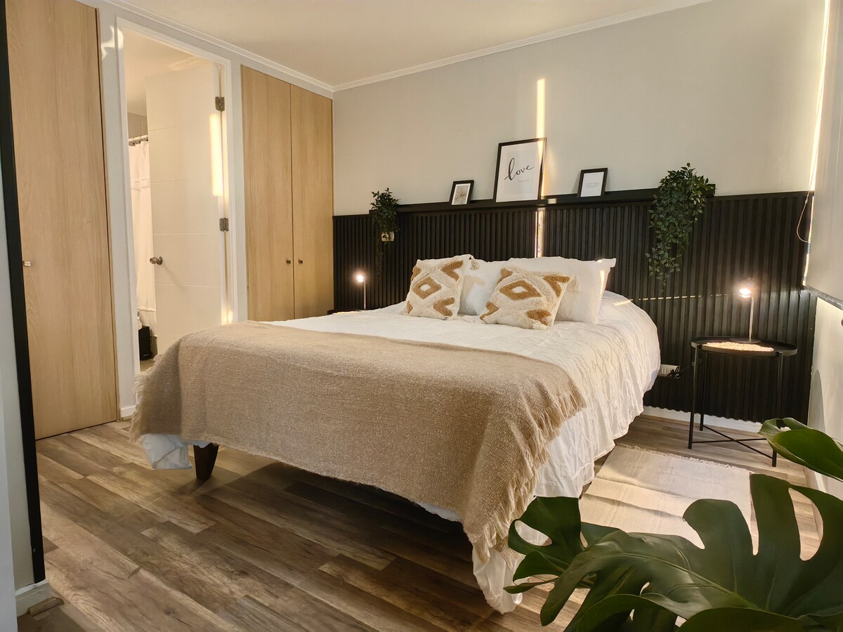 Encanto con cama king, terraza, wifi y AC