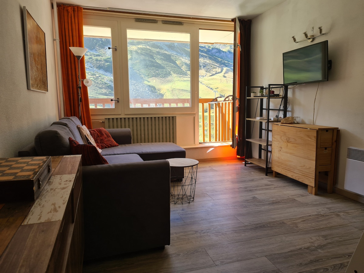 公寓明亮,可供4人入住。La Mongie-tourmalet