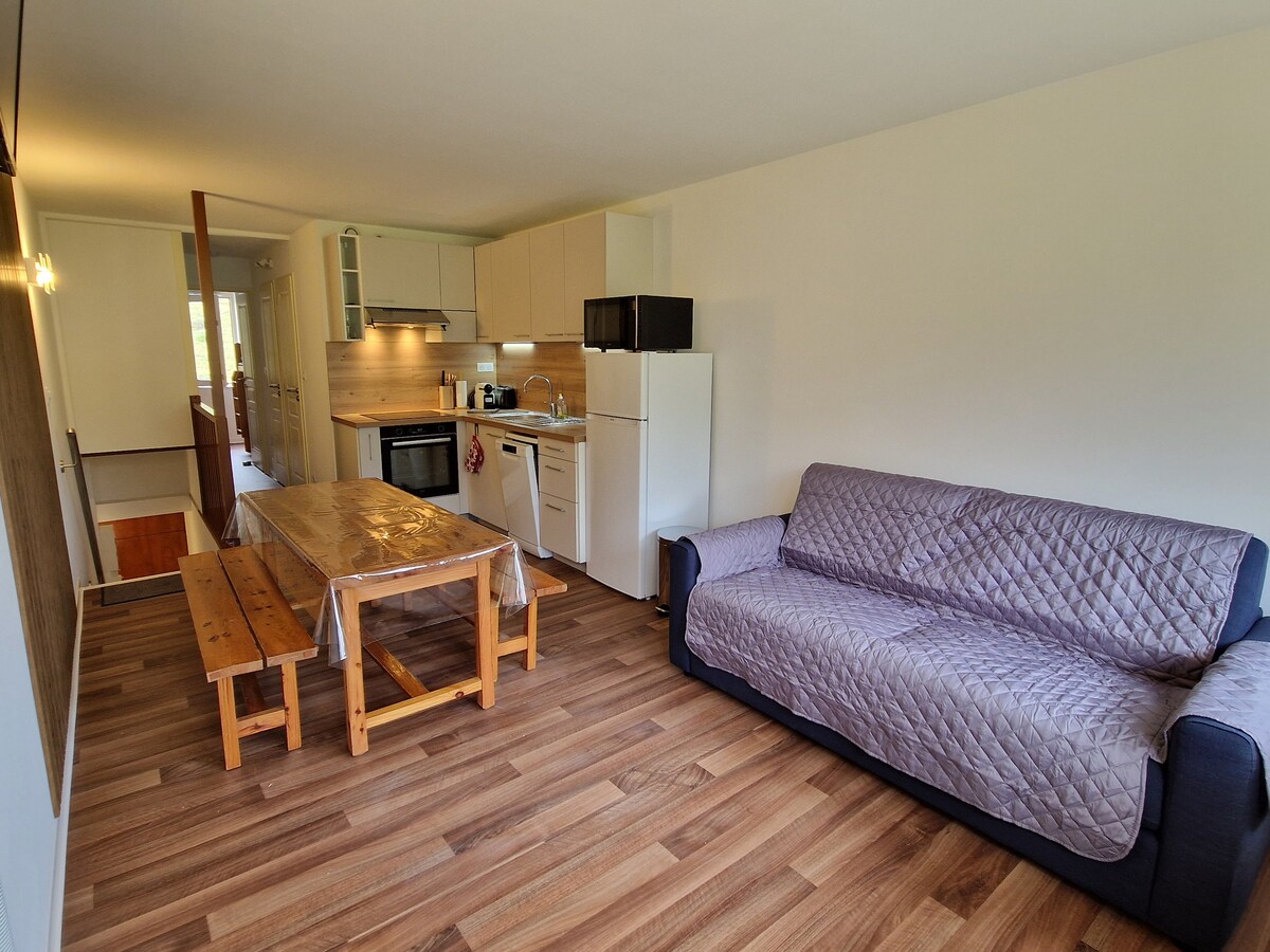 28m² entièrement rénovés pour vous offrir encore plus de confort avec une déco soignée et chaleureuse pouvant accueillir 4 à 6 personnes. Séjour avec cuisine toute équipée (plaque induction 3 feux, hotte, four, micro-ondes, bouilloire, cafetière, grille-pain), salle de bains avec baignoire, alcôve avec 3 lits superposés, WC séparé. Les petits +: un coin nuit fermé avec lit 2 personnes et un grand balcon exposé Ouest- Sud Ouest de 8m² pour profiter du soleil.... A très vite dans les Pyrénées!