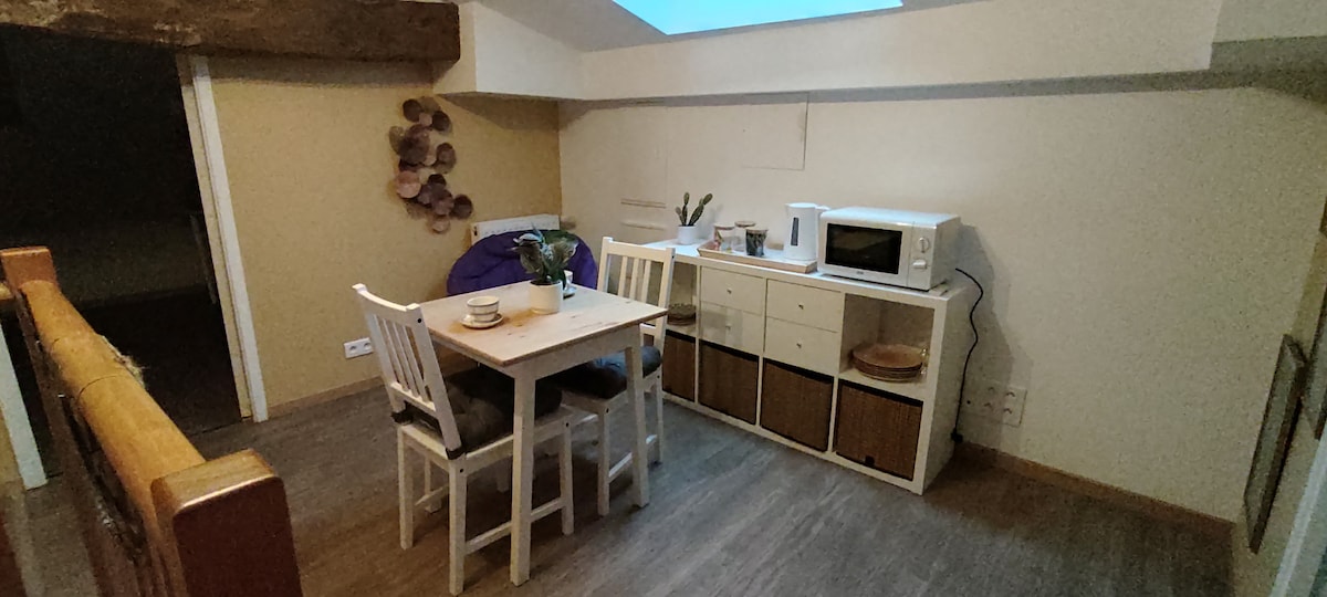 Sur l'itinéraire de La Loire à Vélo, à deux pas d'une petite forêt, de sentiers pédestres et d'une excellente pizzéria. Ici, pas de télé, mais vue sur une serre intérieure à laquelle vous pouvez avoir accès (espace partagé) Studio de 20 m² remis à neuf équipé d'un réfrigérateur, d'un micro-ondes, d'une machine à café (Senseo), d'une bouilloire ainsi que de la vaisselle de base pour pouvoir prendre le petit-déjeuner et réchauffer les repas. Accès indépendant, espace sécurisé pour les vélos.