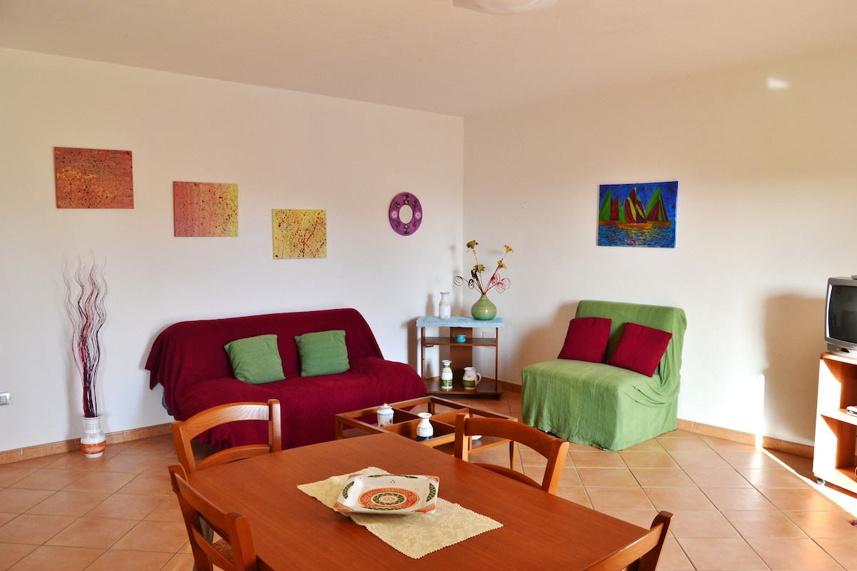 New apartment with private porch and a splendid view of the garden. A double bedroom with wardrobe, main bathroom with double shower, large living area with kitchenette. Design furnishings with a few touches of Sardinian furniture and craftsmanship. The residence is surrounded by greenery just 10 minutes from the city center, close to the main services and beaches, but at the same time away from traffic and noise.