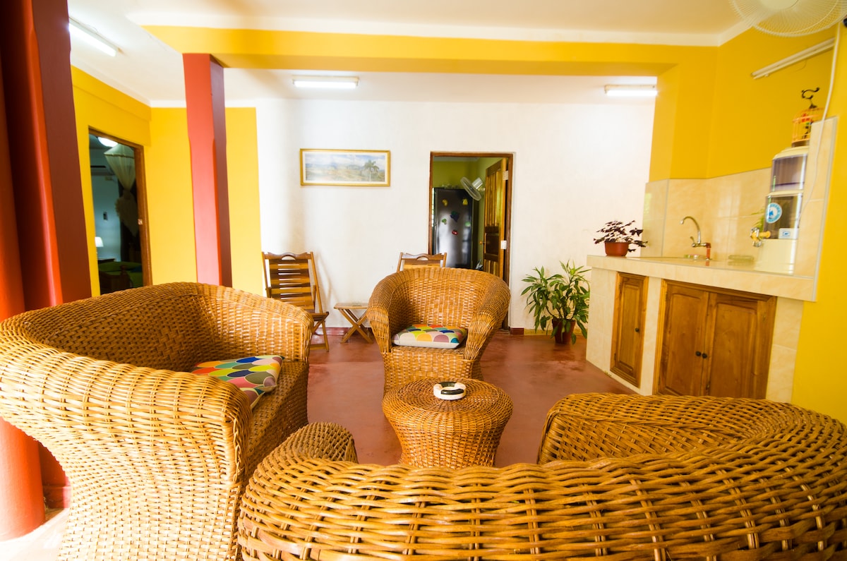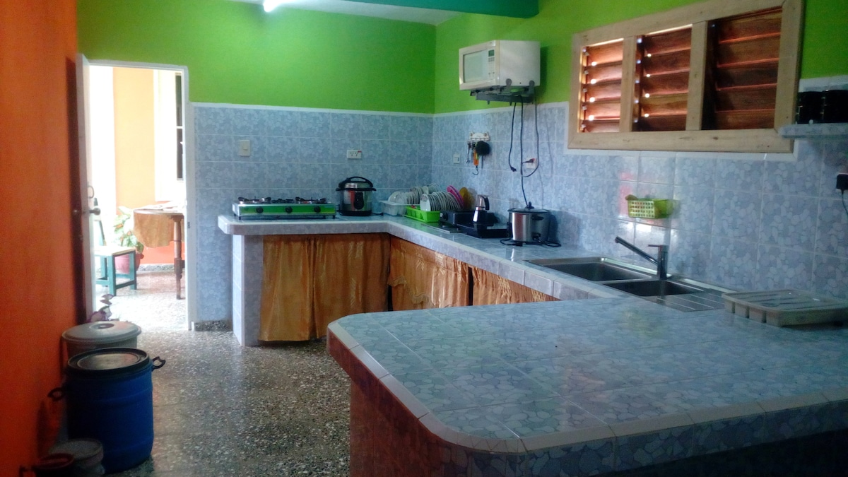 Nuestra casa tiene generador Wifi 24 horas, somos dos adultos y un niño , yo Anara doctora dentista y mi esposo agrónomo,tenemos una casa muy espaciosa , tranquila para relajar de tus vacaciones, tenemos un jardin grande con dos amahacas ,un organoponico sembrado con vegetales ,un pequeño ranchon para desayunar comer o momentos de romanticismo,dos terrazas grandes con una escalera para disfrutar de una bella vista panoramica y puesta de sol habitaciones y entrada independiente .