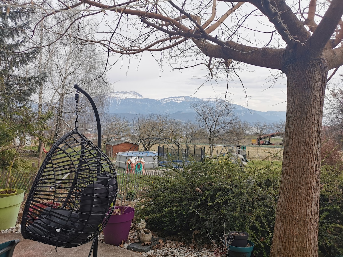 Ideal pour un déplacement professionnel ou pour un séjour au vert et au calme. Au RDC de notre maison individuelle (température agréable même en période de forte chaleure), appartement privatif avec entrée indépendante. 40m2,chambre double,sdb avec baignoire,salon cuisine avec canapé lit, cuisine équipée. Place parking sécurisée par portail. Accés 1500m2 de terrain: piscine, terrain pétanque, balançoire. Proche Voiron (2mns), accés autoroute (5mns), stations Chartreuse et Vercors (1h).