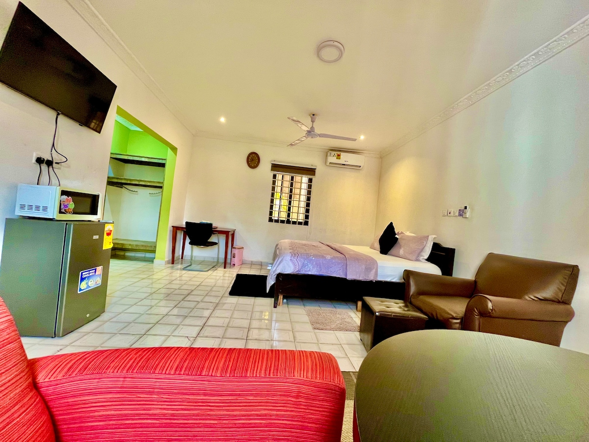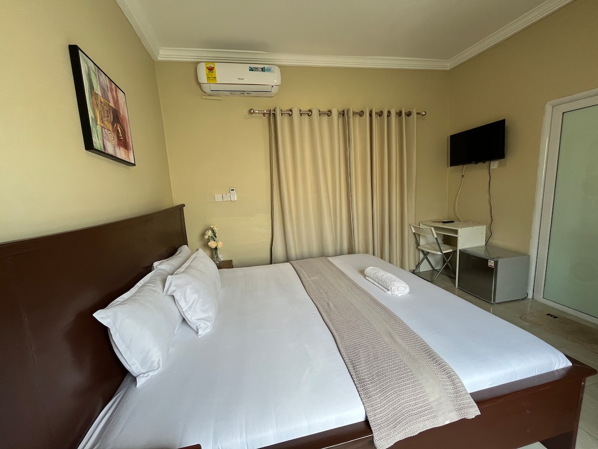 25 bedroom facility with excellent ambiance and an amazing view of the Akwapim ridge. Bed & Breakfast Quiet Hide Out Environment 15-minute drive from the Kotoka International Airport King Size Beds Spacious bathrooms Spacious restaurant Gated in-hotel car parking for free Comfortable and Self-Catering Rooms 24 Hour Excellent Security Personnel with outdoor CCTV cameras High-Speed Fibre Internet Connectivity for Free Close proximity to the Legon Botanical Gardens Easy Access to all nearby suburbs