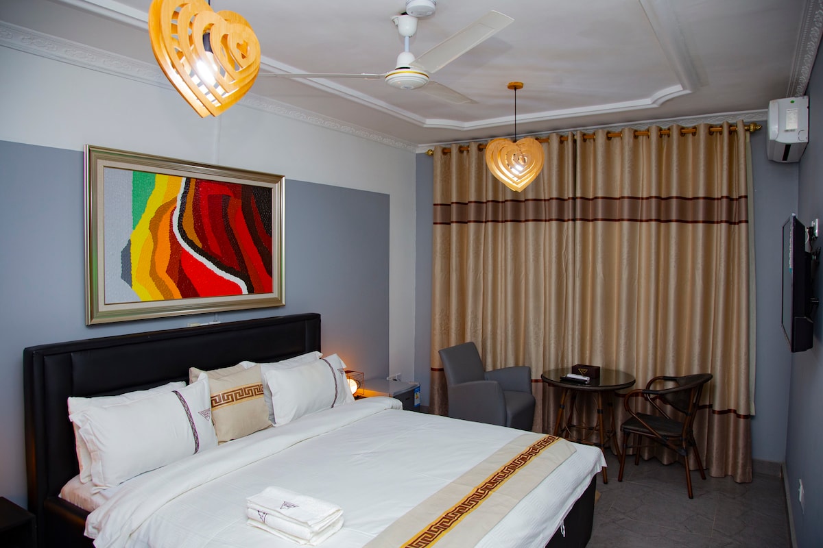 Located in Adenta, GT Hotel provides accommodation with free private parking, a lounge, a restaurant, a sport bar and meeting room. The hotel offers 24-hour front desk and room service. All rooms are en suite with free Wifi, AC, water heater, fridge (in deluxe) and TV with satellite channels. 30mins drive from Kotoka International Airport, with airport shuttle service (at a charge), 35mins drive to Aburi, 15mins drive to East Legon, 5mins walk to the station and 3mins walk to a shopping centre.