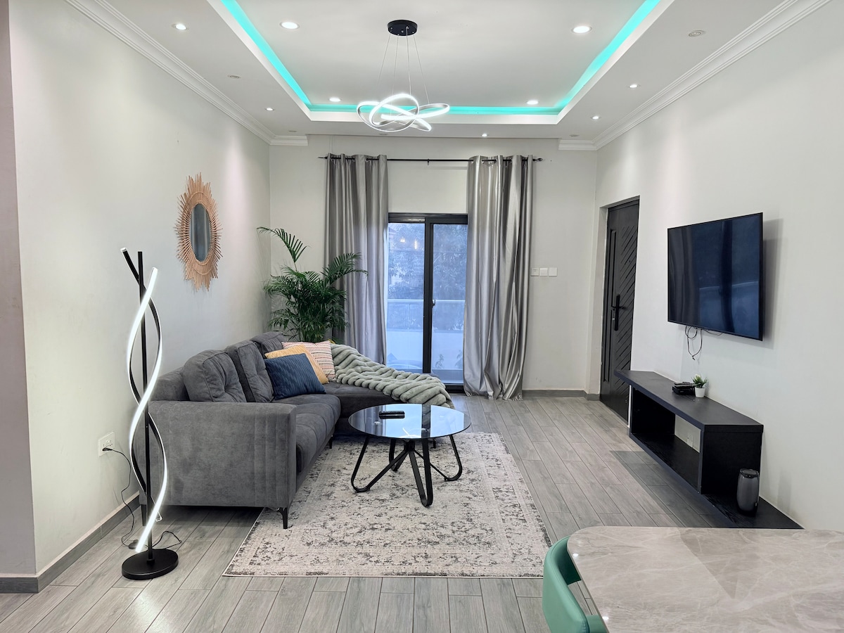 Welcome to your upscale urban getaway in the city of Accra! With a stunning view of the Aburi mountains, only a few minutes drive away or 15 minutes walk. Under 12 miles from the airport, straight on the M4 with no turns. Our two-bedroom apartment offers joy & comfort with 24/7 security, 24/7 electricity & water, with exclusive amenities, such as a pool, rooftop terrace, modern gym, full kitchen, wifi, barbecue, and more that will make your stay truly unforgettable.