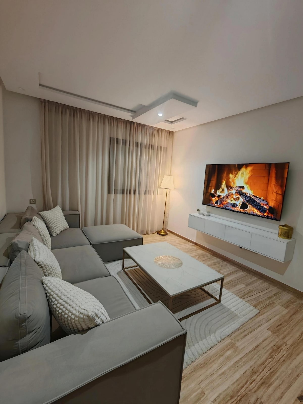 This new apartment offers a modern and comfortable stay, ideal for guests attending the Africa Cup of Nations 2025. Located in a secure residential, it is only 10 minutes from Tangier Airport, 15 minutes from Ibn Battouta Stadium, 30 minutes from Tangier-Med Port, and less than 5 minutes from the ocean beach. Fully furnished and equipped with new furniture, appliances, linens, and towels, this accommodation guarantees a clean, convenient, and enjoyable stay.