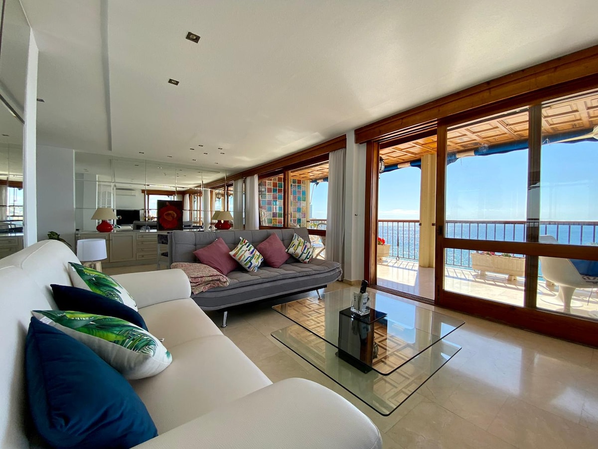 Enjoy this modern and spacious apartment in front of the beach, amazing sunrise from the terrace, right in the center a few steps from everything: restaurants and shops, cafes, supermarkets, banks, pharmacies, playgrounds, golf, walks and routes Fully equipped, Central heating and air conditioning ducts throughout the house and automatic shutters, garage in the same building with lift to the apartment. The Albir is located between Benidorm and Altea. High speed fiber internet 600 Mbps.
