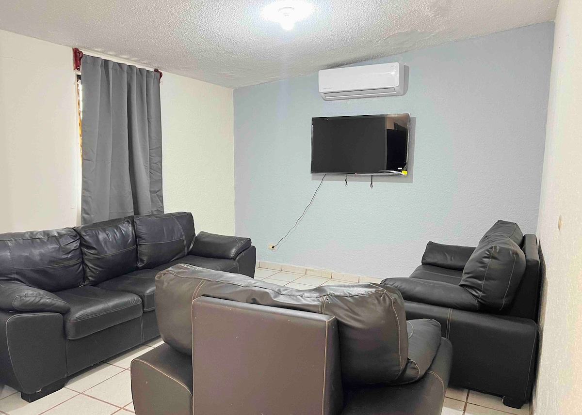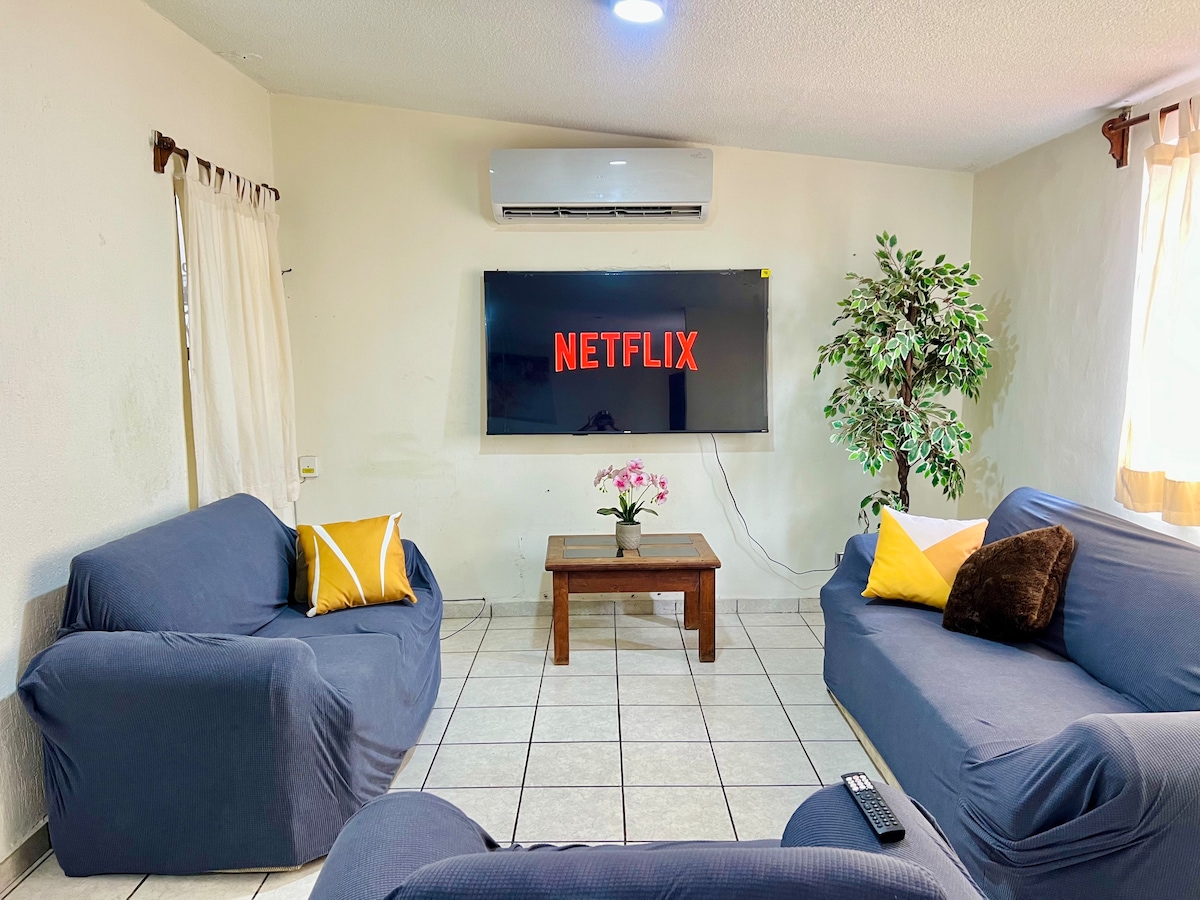 Desconecta de tus preocupaciones en este espacio tan amplio y sereno. Ideal para el descanso o para esparcimiento. las 3 habitaciones cuentan con aire acondicionado. Ubicada a unos pasos de la plaza las Americas.
