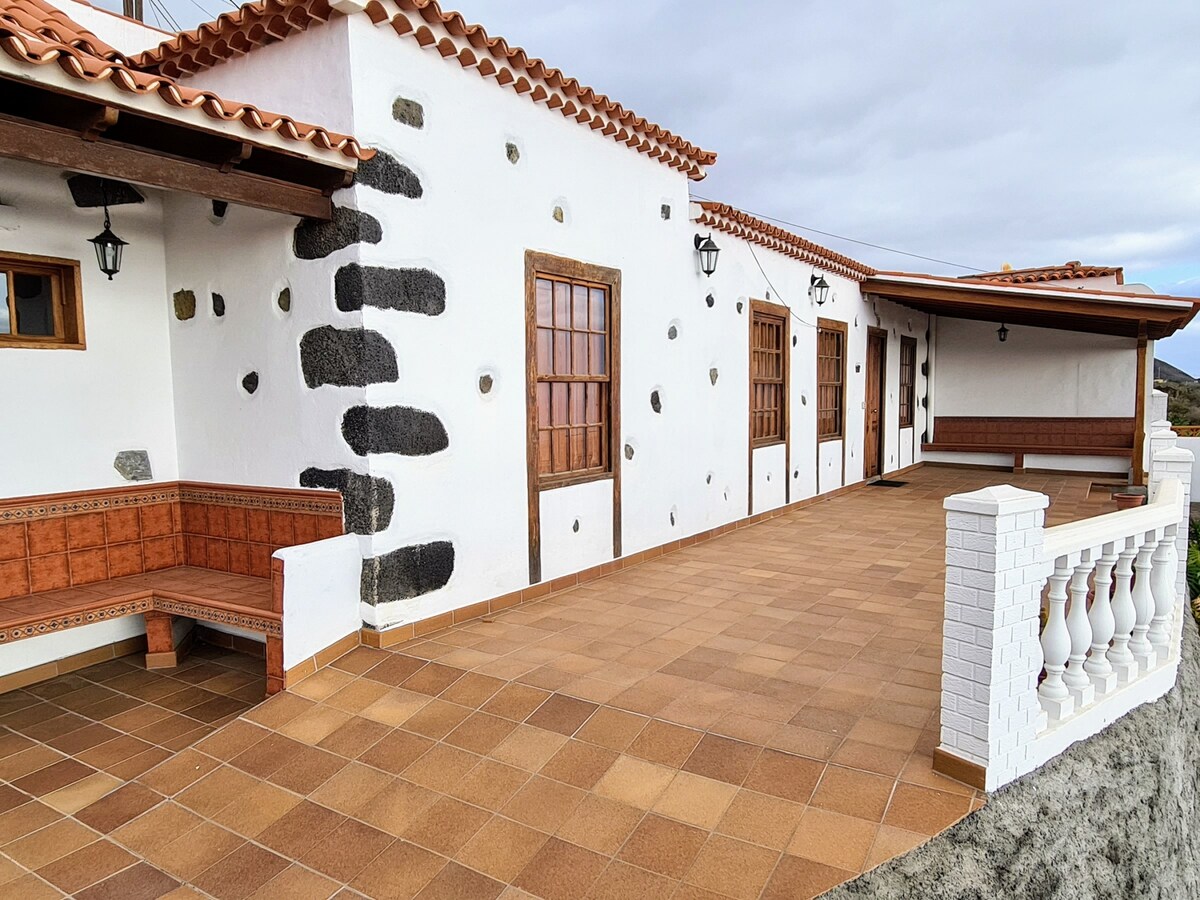 Wonderful holiday home with panoramic views over the Atlantic Ocean in the popular and sunny western area of the island of La Palma: ideal for a relaxing family holiday.<br><br>This house offers all its comforts on one floor: living room with dining room and kitchen, one bedroom with double bed (180 cm x 200 cm), 2 bedrooms with 2 single beds each, a master bathroom with two whirlpool showers and a whirlpool bath, another bathroom with whirlpool shower, a games room and a laundry room.