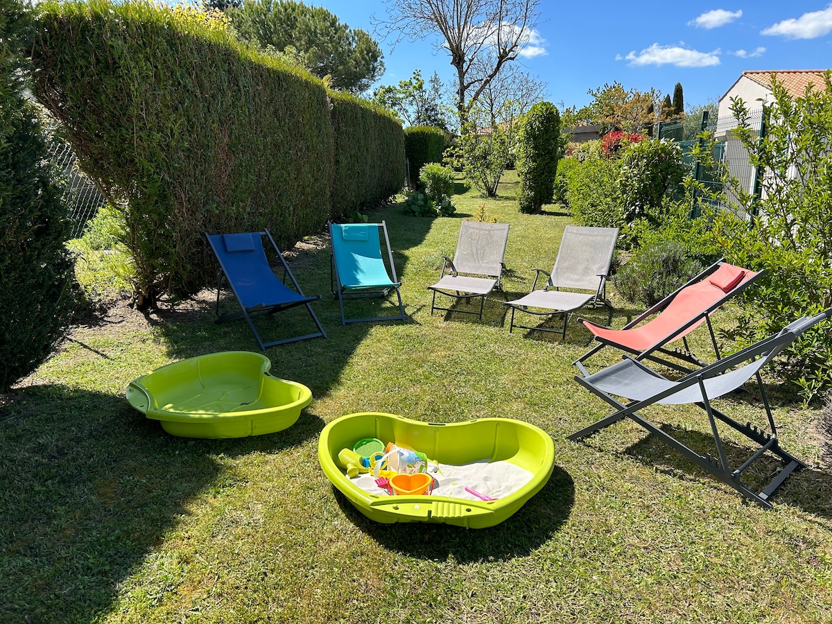 Logement avec jardin clos paysagé, terrasse ombragée avec salon de jardin, barbecue et parking privé. Pièce à vivre climatisée. Simplifiez-vous la vie dans ce logement paisible et central.Maison située à 5 mn du centre ville et du port de plaisance, on peut également accéder aux plages en vélo et en voiture très rapidement car piste cyclable.Venez profiter de ce lieu idéal en famille.