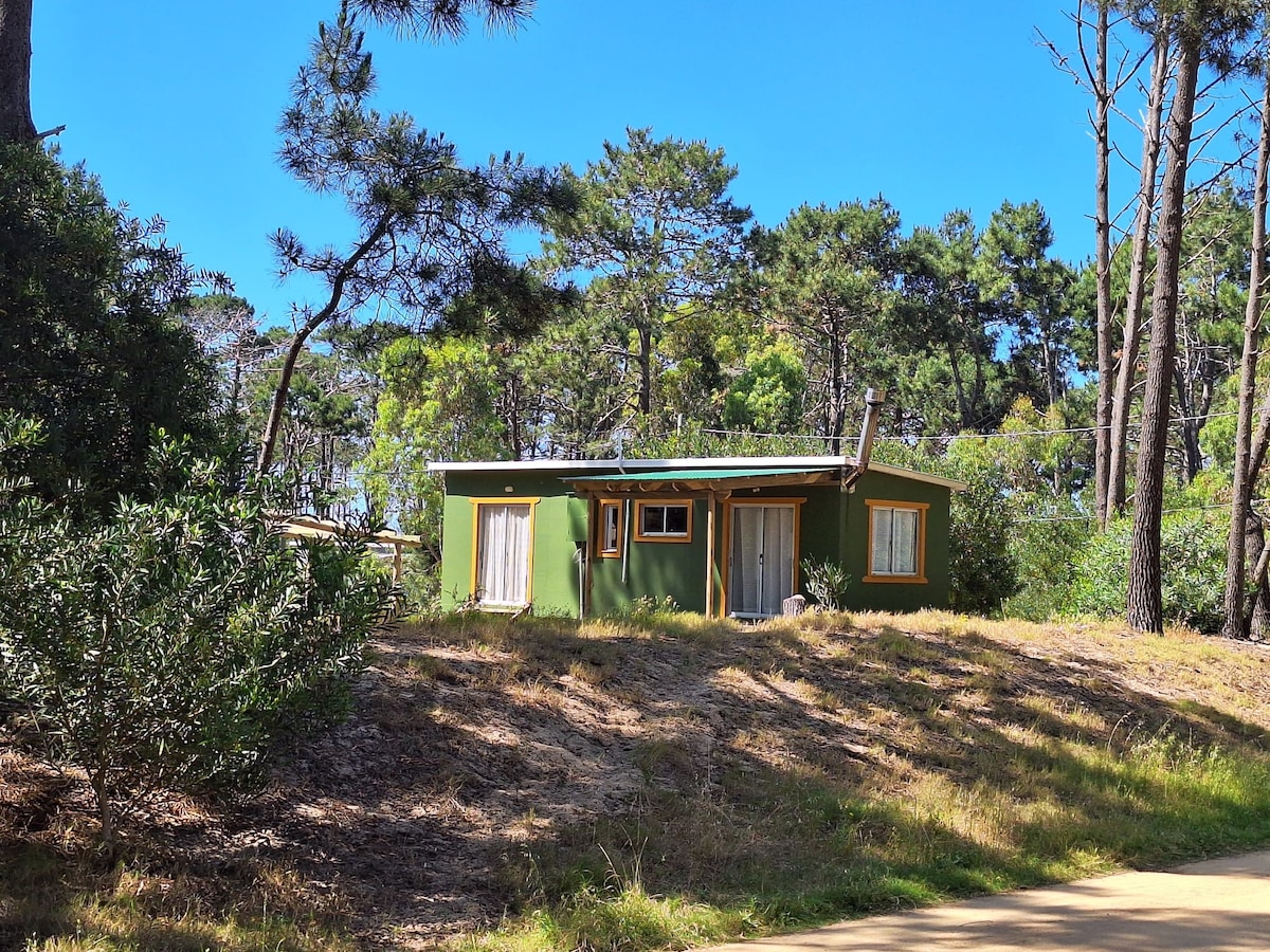 Cabaña con techo de quincha, a 5 cuadras de la playa (La Balconada, El Cabito, Los Botes). Supermercado a 2 cuadras. A pocos minutos del centro de La Paloma. Amplio jardín, con parrillero. WiFi. Televisión smart (sin cable). Aire Acondicionado. Entrada independiente. Zona de bosque. Ideal para descansar! Hablamos inglés. Horario de ingreso: a partir de las 16 hs Horario de salida: máximo hasta las 11 de la mañana. No aceptamos mascotas! IMPORTANTE: Estufa (interior) no habilitada para