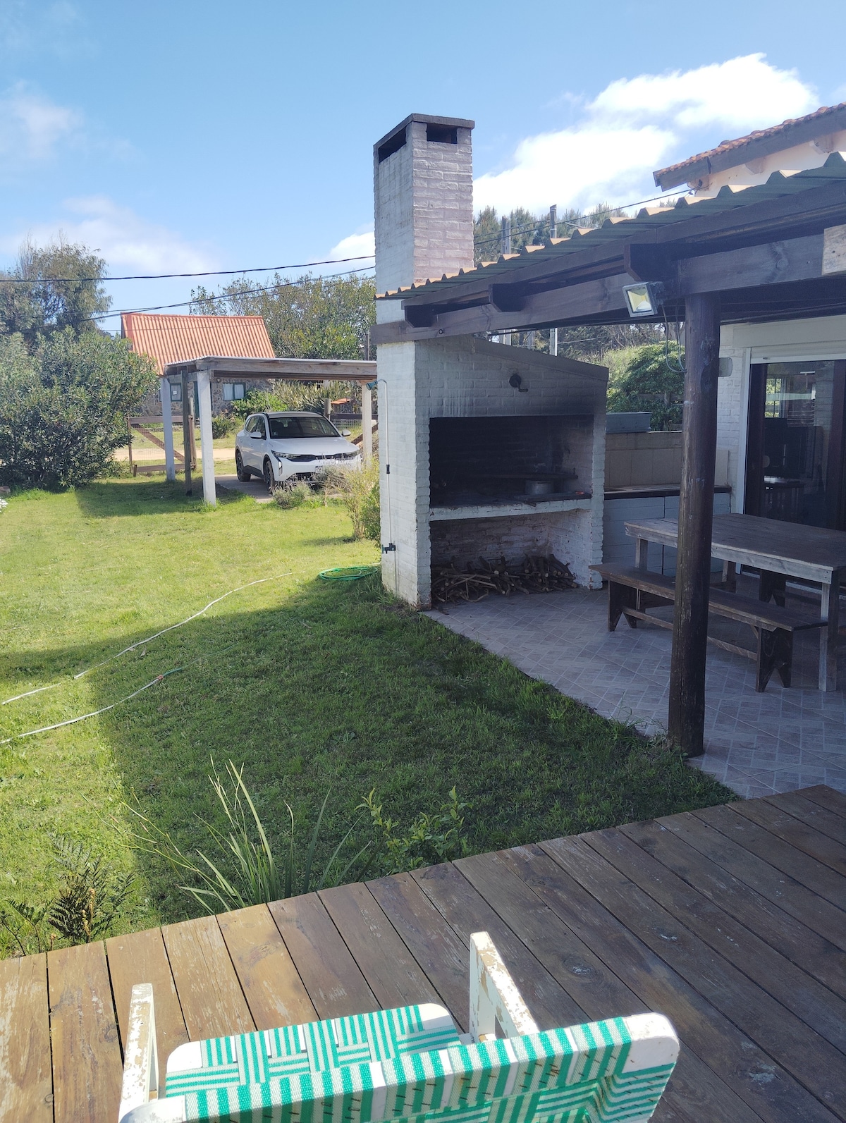 Desconecta de tus preocupaciones en este espacio tan amplio y sereno. Amplio living, espacioso dormitorio con aire acondicionado. Deck al parque de la casa, kitchenette además de tener BARBACOA muy completa de USO EXCLUSIVO de inquilinos de esta casa (anteriormente era compartida). Super independiente, para descansar y disfrutar tranquilidad a solo 2 kms de casco antiguo del ruidoso pero hermoso La Pedrera. Casa muy segura. Tiene cerco perimetral, alarma con monitoreo.