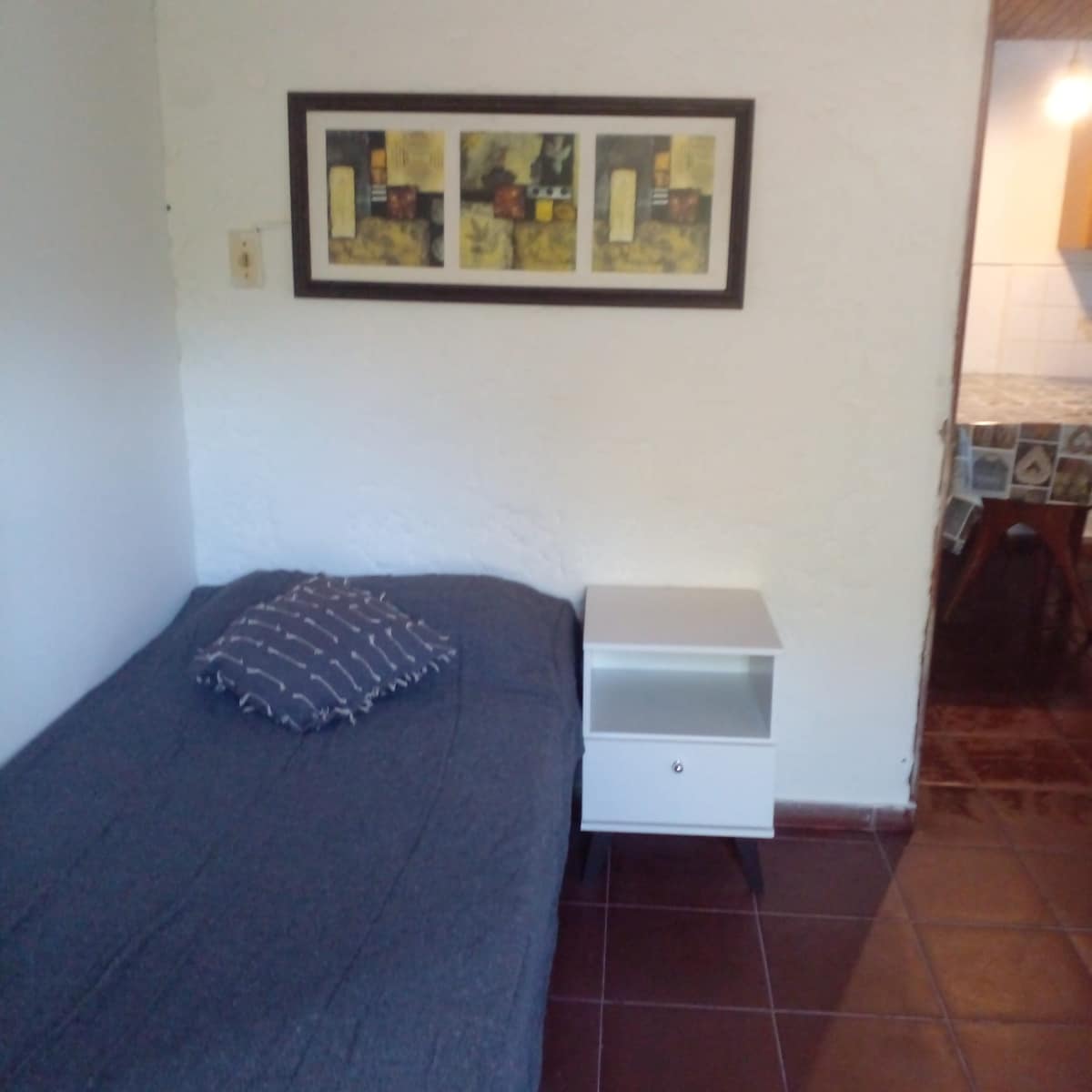 Se viene la época mas linda del año, te esperamos! Casita mono ambiente ideal para 2 personas, cama tamaño King. Colchón extra para un niño en el caso de necesitarlo. Baño y kitchenete Barrio Country, céntrico a 5 cuadras de la playa y el centro comercial de La Paloma. Terreno compartido cada predio cercado y Con independencia Jardín cercado, verde y con sombra, incluye fogón ( función parrillero) *Importante* el aire acondicionado no está incluido.