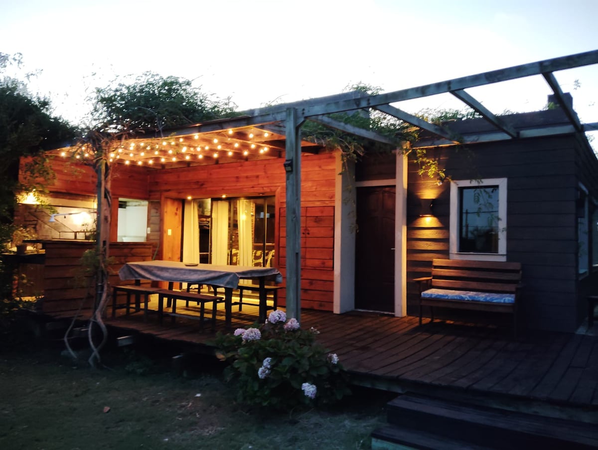 Disfruta de esta encantadora cabaña de un dormitorio con todas las comodidades en una ubicación privilegiada: un entorno sereno y seguro, ideal para disfrutar de la tranquilidad del mar y el bosque. A tan solo 10 minutos del centro y a 7 cuadras de una playa familiar, tendrás lo mejor del balneario al alcance de la mano. Además, contarás con servicios de almacén a pocos metros para tu comodidad. El refugio perfecto para desconectarte y relajarte :) **Consulta por descuentos de invierno**
