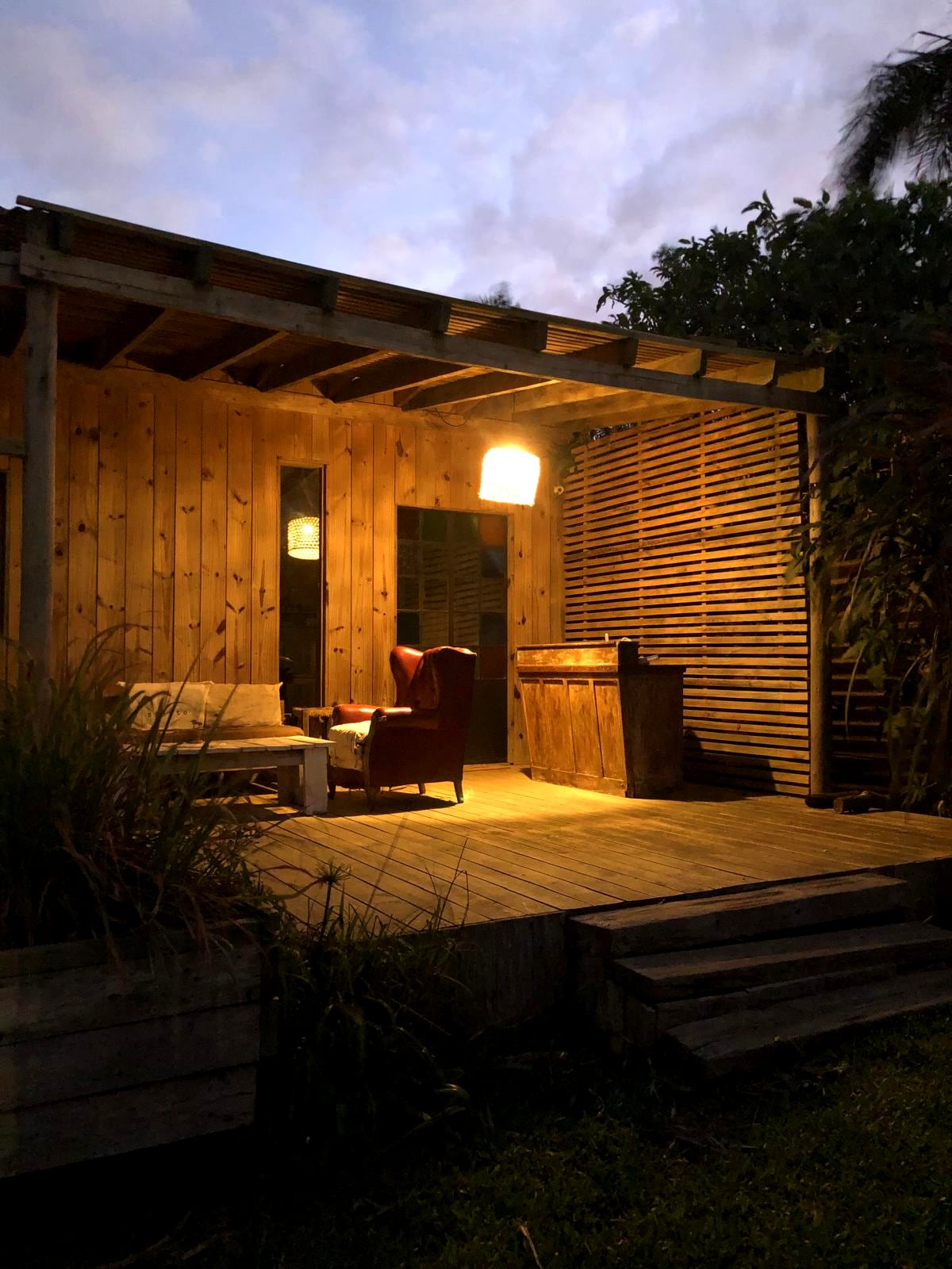 Casa para dos personas a 6 cuadras de playa paradisíaca. Terreno cercado apto para mascotas. Amor y diseño puestos en cada detalle. Barrio tranquilo y seguro. Servicio de alarma con respuesta incluido. Deck y pérgola integrada. Amplio terreno con sombra de Acacias. Medio tanque para hacer fuegos con tranquilidad. Lugar para el coche. Un espacio con espíritu de disfrute y armonía.