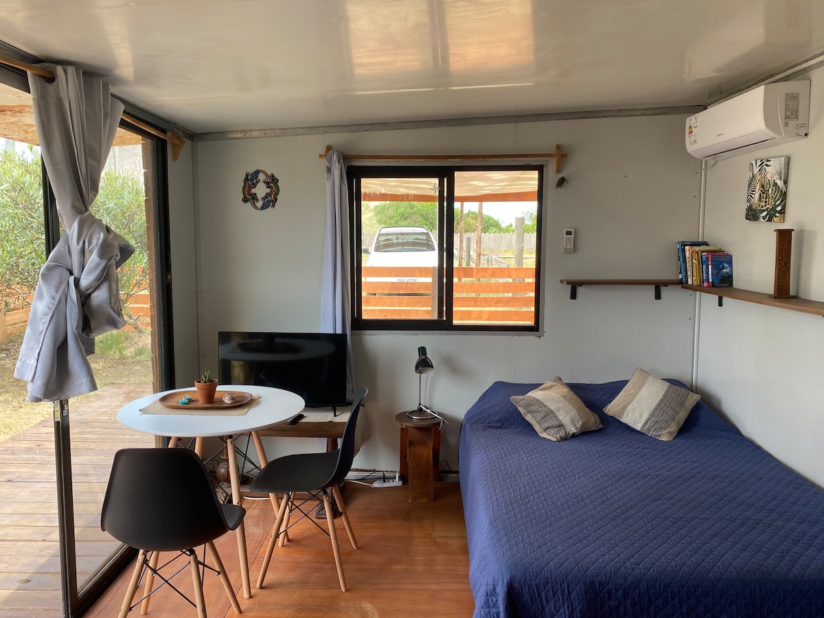 Moderna cabaña elevada, casi como casita en un árbol, ideal para parejas en una escapada o vacaciones. Se encuentra en la zona más tranquila de La Paloma, silenciosa y arbolada. A unos 10' en auto del centro de La Paloma y a tan sólo 300 mts de la mejor playa de La Paloma! Luminosa y confortable, toda comodidad para privacidad y descanso, terraza de sol a sol, y estacionamiento privado. Los anfitriones viven en el mismo terreno, lo que garantiza atención 24/7 ante cualquier necesidad.