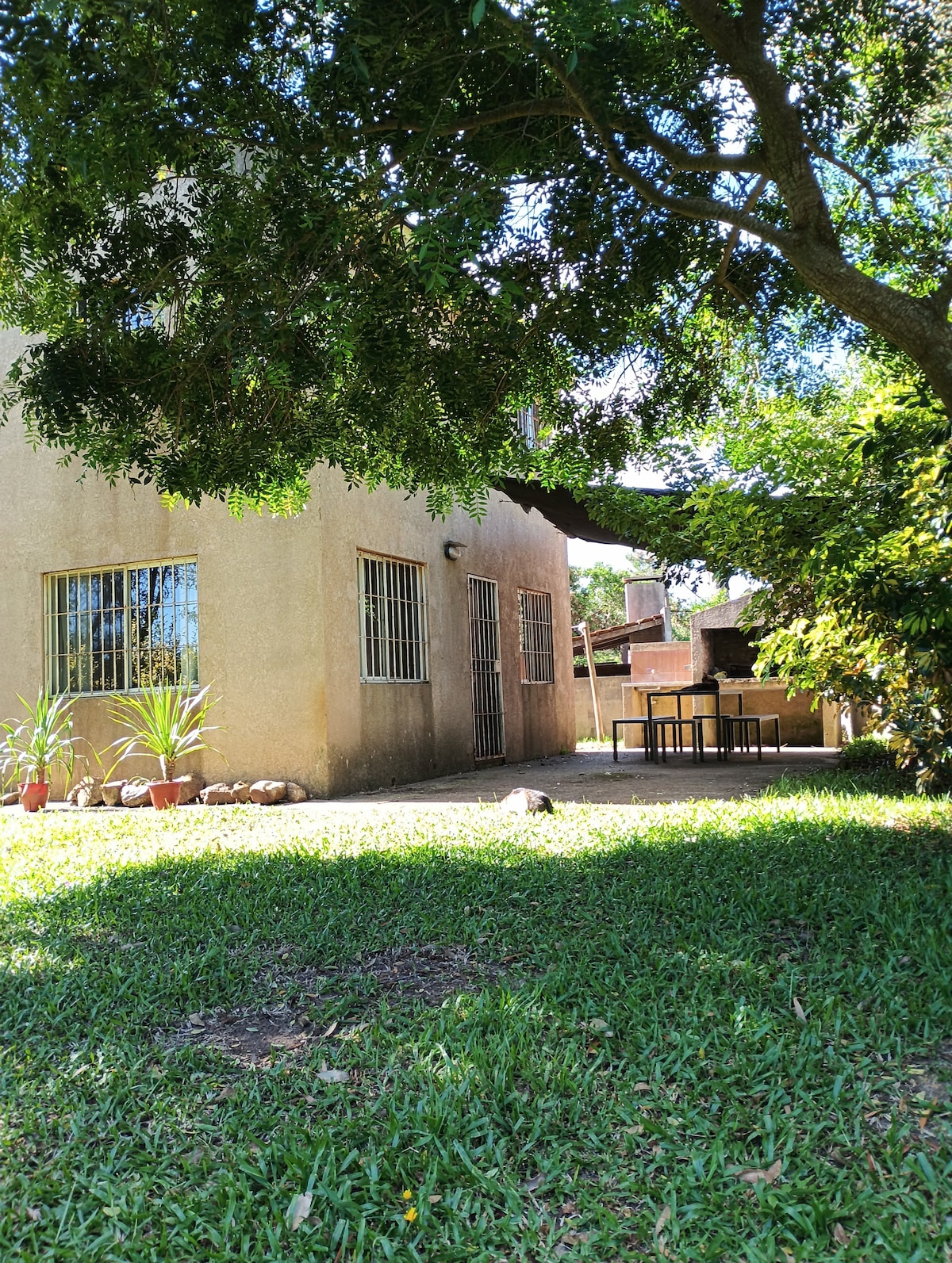 Cabaña con techo de quincha, a 5 cuadras de la playa (La Balconada, El Cabito, Los Botes). Supermercado a 2 cuadras. A pocos minutos del centro de La Paloma. Amplio jardín, con parrillero. WiFi. Televisión smart (sin cable). Aire Acondicionado. Entrada independiente. Zona de bosque. Ideal para descansar! Hablamos inglés. Horario de ingreso: a partir de las 16 hs Horario de salida: máximo hasta las 11 de la mañana. No aceptamos mascotas! IMPORTANTE: Estufa (interior) no habilitada para