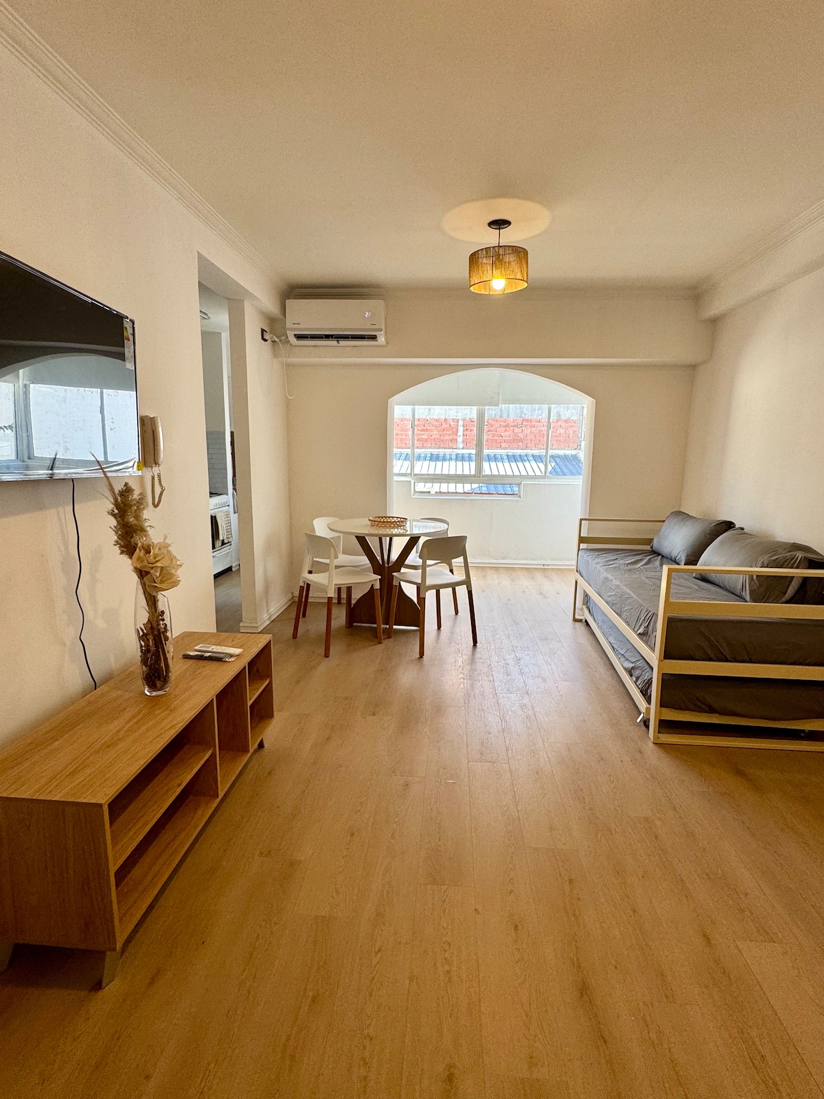 Apartamento moderno a 1 cuadra de la plaza central. 2 patios privados, cochera GRATIS (+2 noches), WiFi alta velocidad. Zona 100% bancaria: seguro, silencioso, caminás a TODO. Ideal trabajo remoto, parejas y familias. Atención personalizada 24/7. Rating 4.67 Airbnb. Check-in flexible. Incluye: ropa cama, toallas, cocina equipada. No mascotas, no fumar. Max 3 huéspedes. ⭐⭐⭐⭐⭐