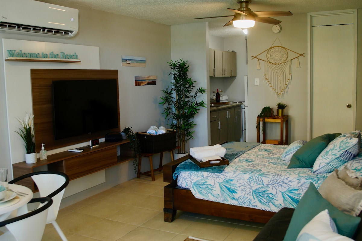 BlueBeach Apartment – Oceanfront Escape in Luquillo 🌴 Wake up to breathtaking ocean views and the sound of the waves in this cozy beachfront apartment with direct beach access. Enjoy the refreshing sea breeze and a peaceful, romantic atmosphere — perfect for couples. Located just 10 minutes from El Yunque Rainforest and 35 minutes from San Juan Airport, and surrounded by great restaurants and Luquillo’s famous kiosks, this spot is the perfect blend of relaxation and convenience.