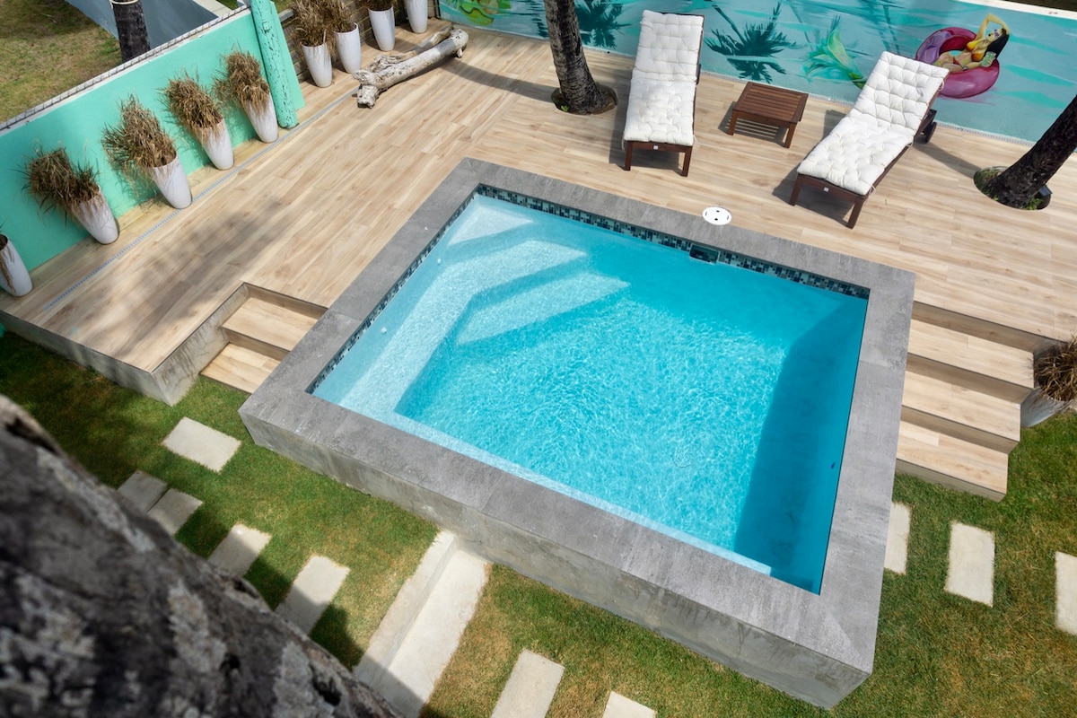 Welcome to Dirk's Loft at Cava's Place located right on the beach of Luquillo. A colorful, tropical beachfront house full of art, amenities and a great vibe. Large sliding door on the bedroom, that when opened, it's like sleeping in the sky just a few feet from the ocean. Double doors open from the living room to take in the unique pool just outside your door.