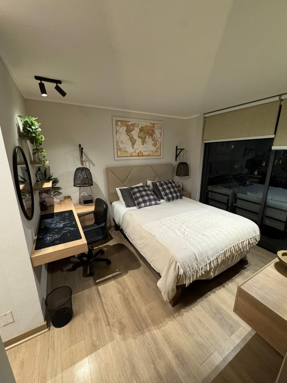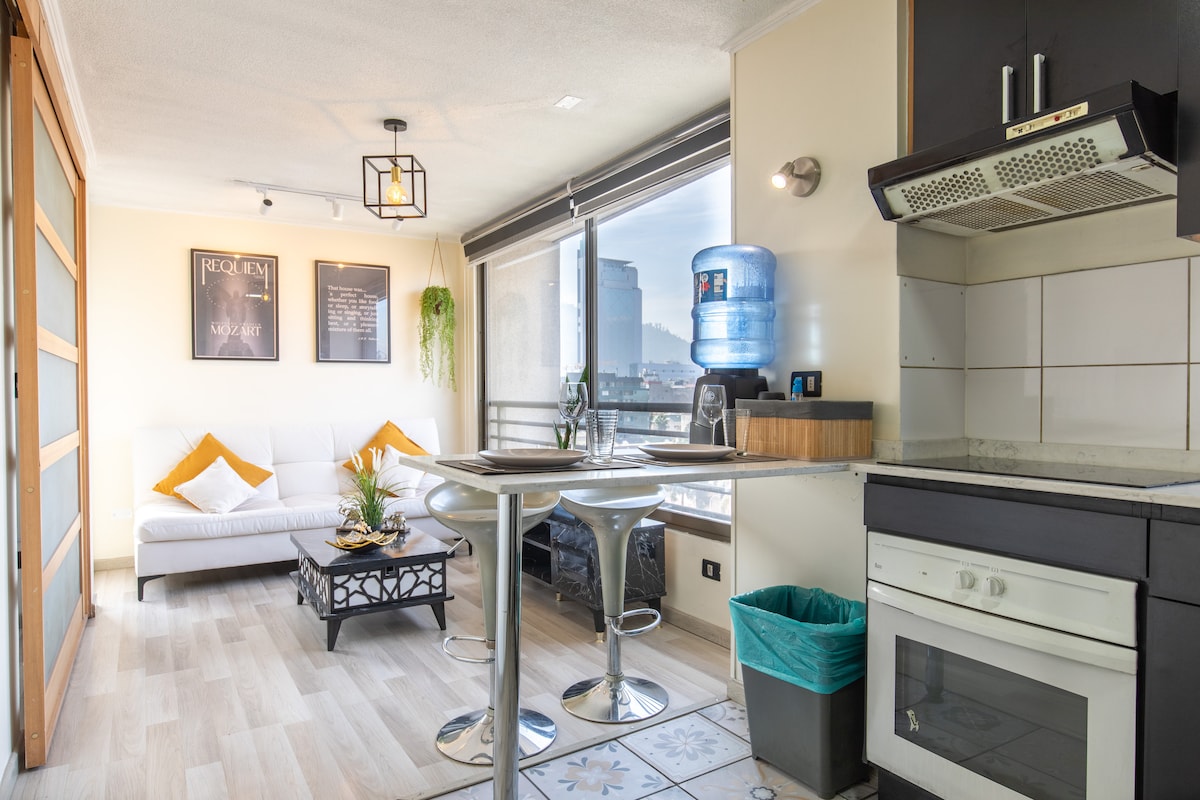 This apartment is ideal for relaxing and enjoying the city. It's centrally located, between the Santiago Centro and Providencia districts, one of the best locations in the city. It offers beautiful views of San Cristóbal Hill and the Sky Costanera. It's just a 3-minute walk from the metro and buses. Includes: Free Wi-Fi, a fully equipped kitchen, sheets and towels included, a large bed with a large Smart TV. Self-service entrance with a key, allowing you to arrive at any time.