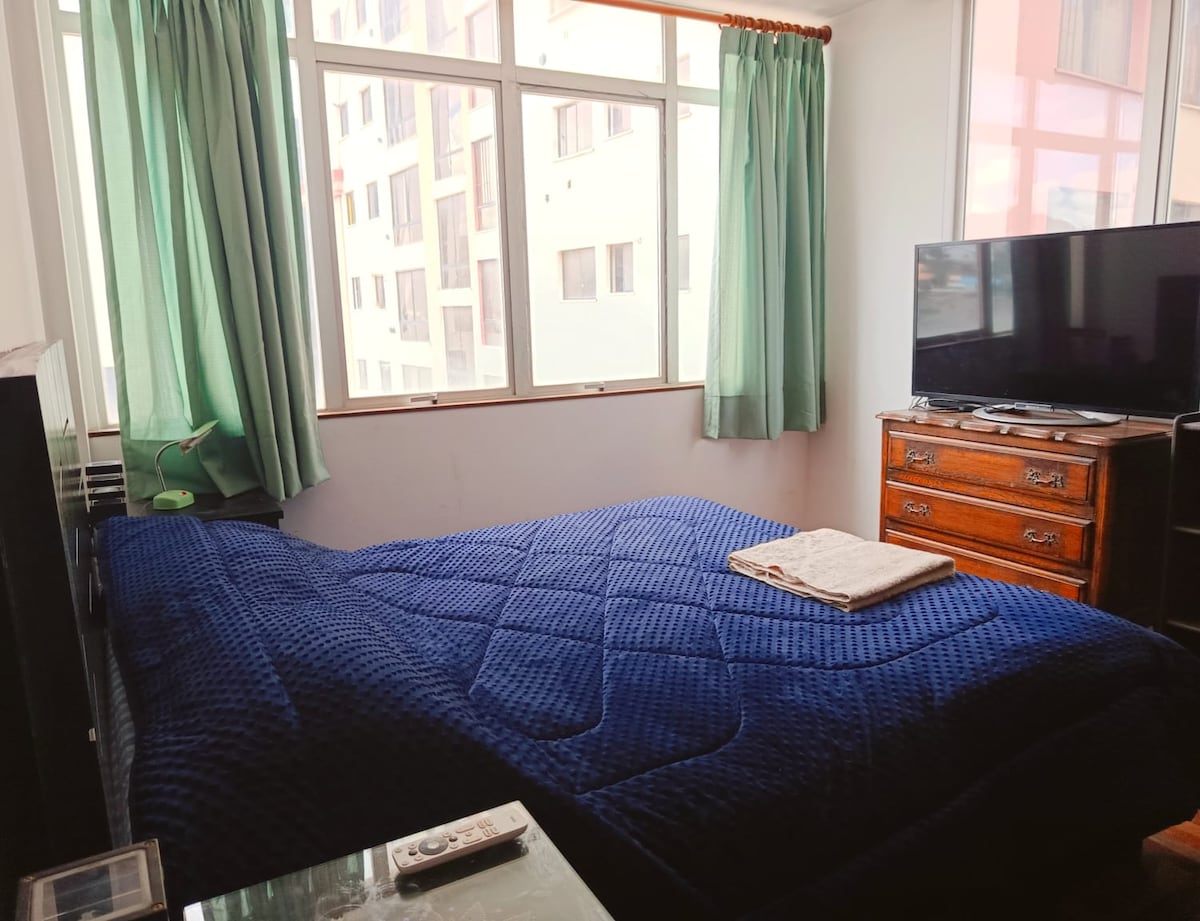 Enjoy a unique experience in our panoramic apartment 🏙️ in the heart of La Paz. Surrounded by restaurants, cafes, attractions, plazas, pubs, supermarkets, and much more. Located on the 18th floor, you won't miss any of La Paz's beauty. The apartment is equipped with everything you need to make you feel at home 🏠 . From the doorstep, you'll find transportation to all points of the city 🚌. The building has 24-hour security and surveillance for your safety.