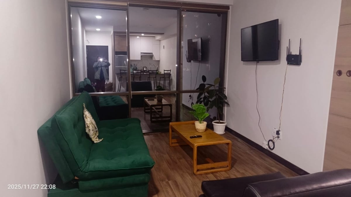 Discover Sopocachi from my sunny apartment! Steps away from supermarkets, restaurants, gyms. Includes bedroom, bathroom, fully equipped kitchen, cozy living room. Stay connected with Smart TV, Wi-Fi. 24/7 security, exclusive building access. Continuous assistance during your stay. Book now for an authentic experience in this vibrant neighborhood! We look forward to welcoming you!