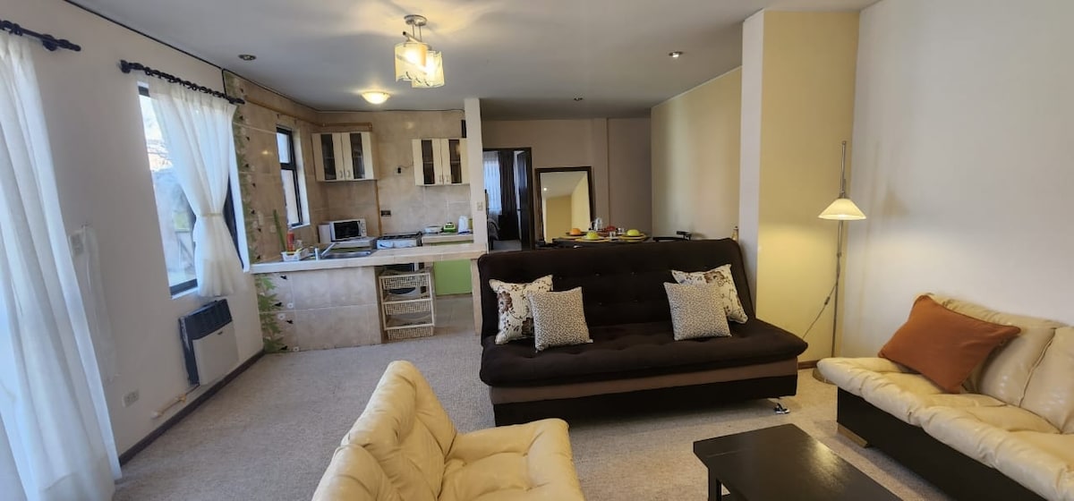 Departamento de 1 dormitorio estilo moderno en la Zona de Sopocachi, acogedor y luminoso, ideal para 2 a 4 personas. Cuenta con cocina equipada, Smart TV, calefacción y baño equipados. A tres del teleférico, la Plaza España y el mirador El Montículo. Con terraza mirador y parrillero compartida. Modern 1-bedroom apartment for up to 4 guests. Great location near the cable car, Plaza España, and El Montículo viewpoint. Features a shared penthouse-style terrace, fully equipped kitchen, Smart TV.