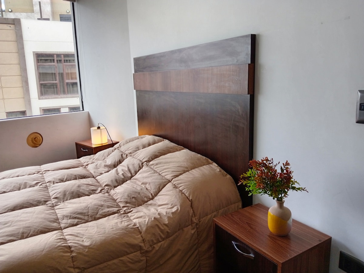 Enjoy a comfortable stay in this modern apartment with spectacular views—ideal for relaxing or working with ease. Includes pool, dry sauna, steam room, and gym. Every detail is designed to offer a warm, practical, and pleasant experience. Located in a quiet, safe, and strategic area near cafés, embassies, banks, supermarkets, restaurants, and public transport. Perfect for couples, travelers, or work stays.