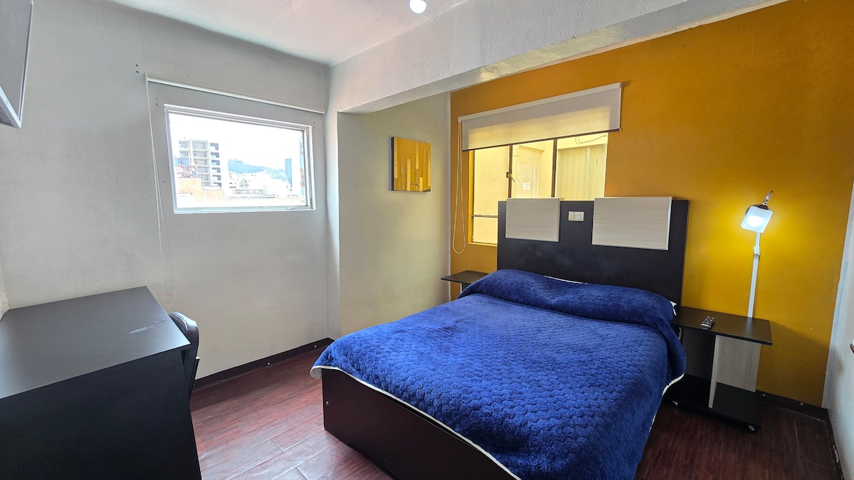 una habitación muy céntrica, cerca de restaurantes, pubs, cafeterías, áreas turísticos como la calle de la brujas y/o paraguitas, tambien la plaza principal de la ciudad esta a 10 minutos palacio de gobierno entre otros. la habitación es bastante cómoda y bien equipada con lo necesario y de fácil acceso.