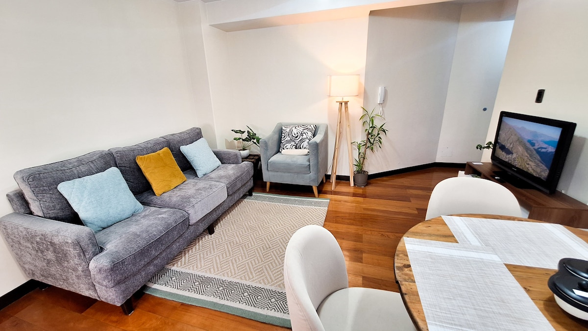 Este lugar tiene una ubicación estratégica. El departamento es cálido, confortable, impecablemente límpio y muy bien equipado. Ideal para vacacionar. Este es un departamento nuevo, estrenamos todo el equipamiento. La zona es céntrica y cuenta con todo tipo de servicios a pocos pasos: tiendas, cines, cafeterías, restaurantes, bancos, embajadas, estación de teleférico y sitios de diversión nocturna.