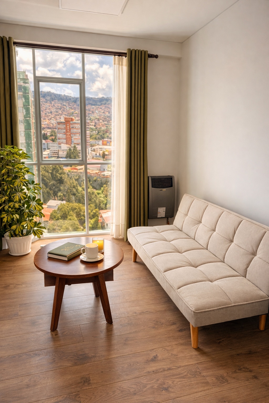 Disfruta La Paz desde Sopocachi, uno de los barrios más culturales y céntricos de la ciudad. Este luminoso departamento cuenta con balcón y terraza privada con vistas despejadas, un ambiente tranquilo para descansar, trabajar o simplemente sentirte en casa. El espacio fue diseñado para viajeros que valoran la comodidad, la privacidad y la buena ubicación: a solo pasos de cafés, restaurantes, mercados y la vida cultural paceña.