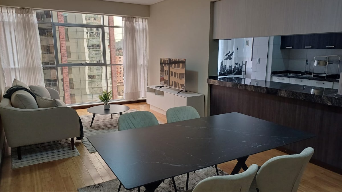 Discover Sopocachi from my sunny apartment! Steps away from supermarkets, restaurants, gyms. Includes bedroom, bathroom, fully equipped kitchen, cozy living room. Stay connected with Smart TV, Wi-Fi. 24/7 security, exclusive building access. Continuous assistance during your stay. Book now for an authentic experience in this vibrant neighborhood! We look forward to welcoming you!