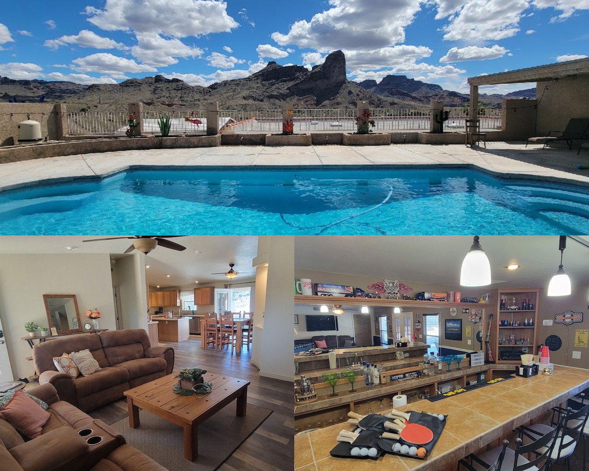 Cozy 3-bed, 2-bath home with beautiful mountain views, perfect for families, friends, or snowbirds. Enjoy a pool table, spacious living areas, and easy access to outdoor fun. Just minutes from Fox's, Roadrunner, 4 star Emerald Canyon Golf Course, Parker Dam, Havasu Springs Resort and less than 200ft to the private launch ramp and community park, plus a short 25 min drive to the London Bridge. Ideal location and weather for a memorable getaway! House comes with 2 car garage for your use.