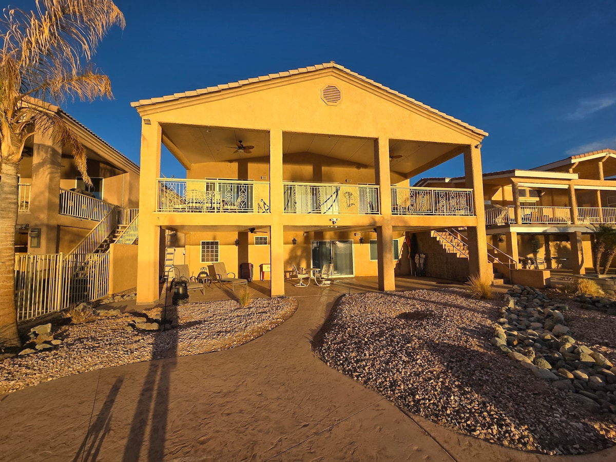 Welcome to our beautiful spacious river home. Our home is a perfect place to come out to enjoy the Colorado river. We are located near the Parker Dam with a private park and boat launch for your convenience. Our home features 4 bedrooms with a total of 4 Queen size beds and 1 King in the master suite. There is a beautiful game room with a pool table and a foosball table in the living room for added fun after a long day on the water. Come join us for a fun family/friends relaxing time!!!