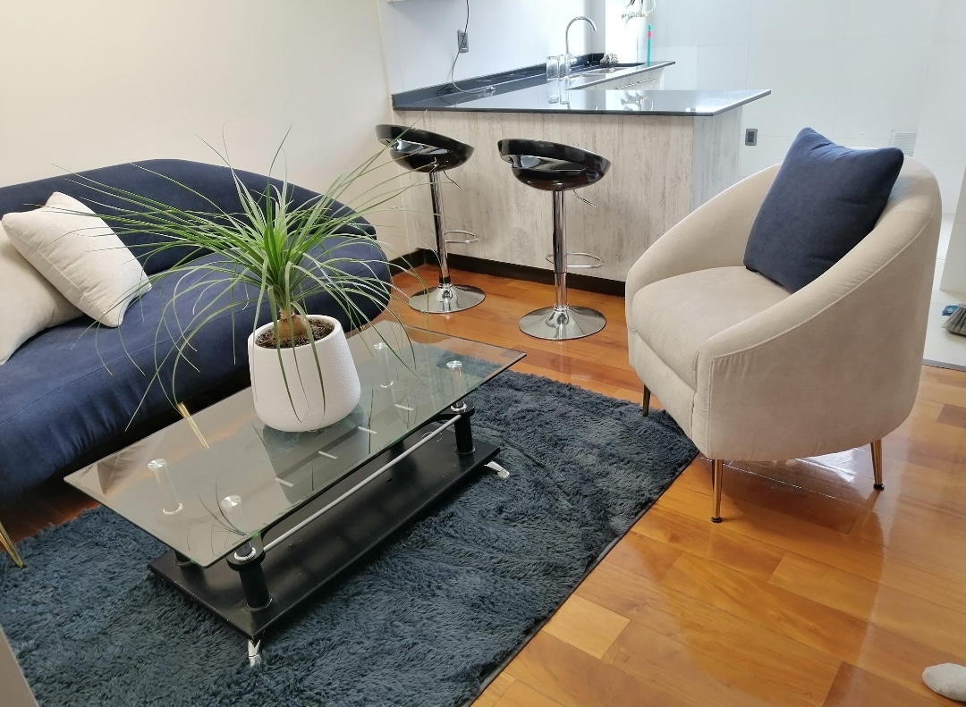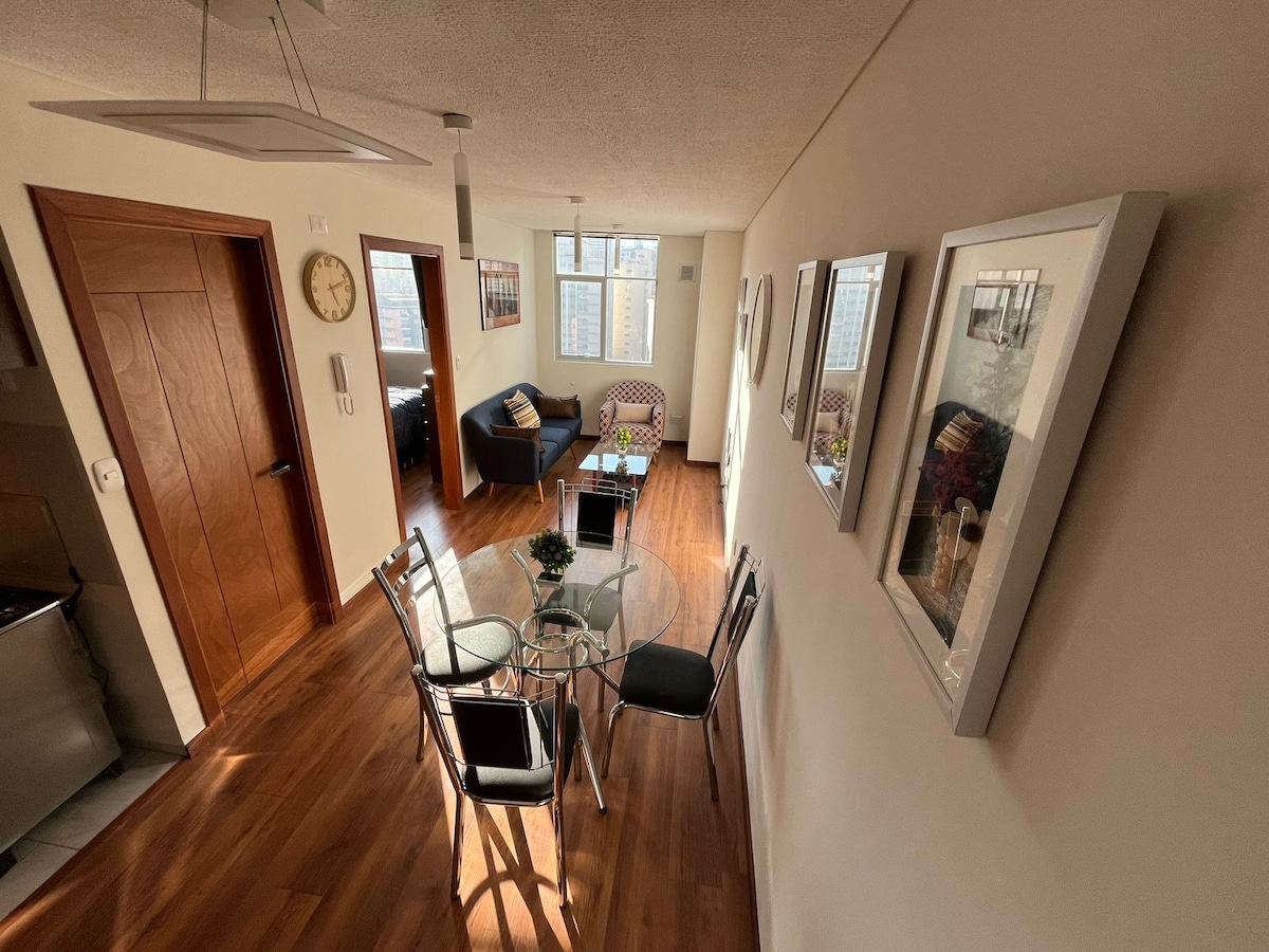 Departamento con espacios independientes, en piso alto, con ascensores, Wifi 5G rapido y estable, seguridad las 24 horas, a minutos del centro de la ciudad. Colchón de dos plazas y media de gama alta, almohadas con capa de GEL que brinda una refrescante sensación al dormir, para trabajar, agua caliente en ducha, lavado y cocina, amoblado y equipado, lavadora, TV - Netflix; todo nuevo con calefacción radiante. Cerca de supermercados, restaurantes, cafeterías, pub, panaderías y otros.