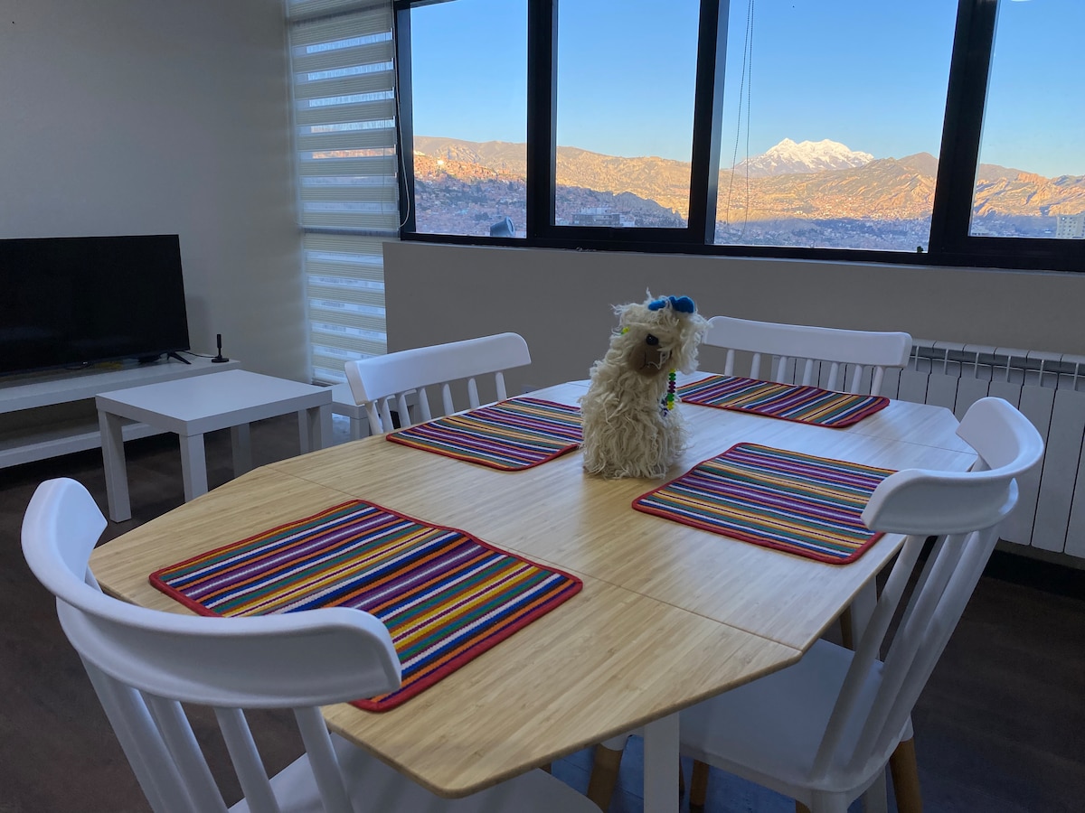 Enjoy a unique experience in our panoramic apartment 🏙️ in the heart of La Paz. Surrounded by restaurants, cafes, attractions, plazas, pubs, supermarkets, and much more. Located on the 18th floor, you won't miss any of La Paz's beauty. The apartment is equipped with everything you need to make you feel at home 🏠 . From the doorstep, you'll find transportation to all points of the city 🚌. The building has 24-hour security and surveillance for your safety.