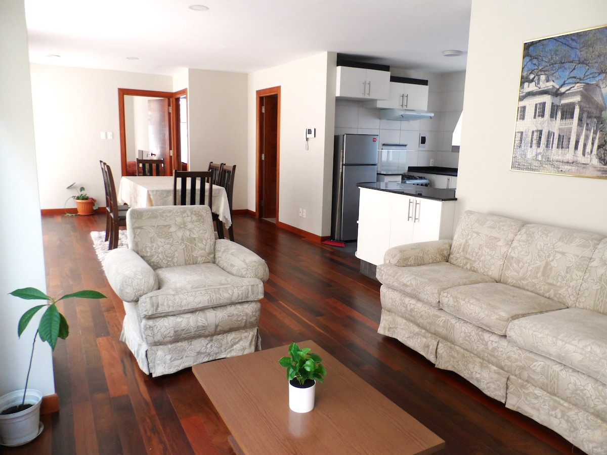 One bedroom apartment with private terrace in Sopocachi. Enjoy a unique stay in this beautiful private one bedroom apartment, designed to offer you comfort, warmth and tranquility. Located in Sopocachi, one of the safest and most central areas of La Paz, you will be surrounded by cafes, restaurants, bars and art galleries, with easy access to public transportation and only two blocks from Plaza Avaroa and Plaza España.