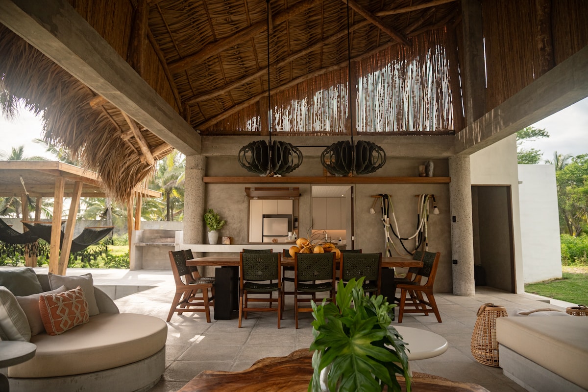 Front beach, amplio alojamiento es único , en la mejor zona de la costa del sol , con diferentes espacios para que disfrutes y si lo prefieres puedes contar con servicio de cocina de manera adicional, a 30 minutos del aeropuerto, somos petfriendly, amplia piscina , ranchos hamaqueros , jardines , 4 habitaciones, 6 baños , generalmente se alquila para 15 personas , pero tiene más habitaciones para albergar más , no querrás salir de la propiedad , pero hay más actividades