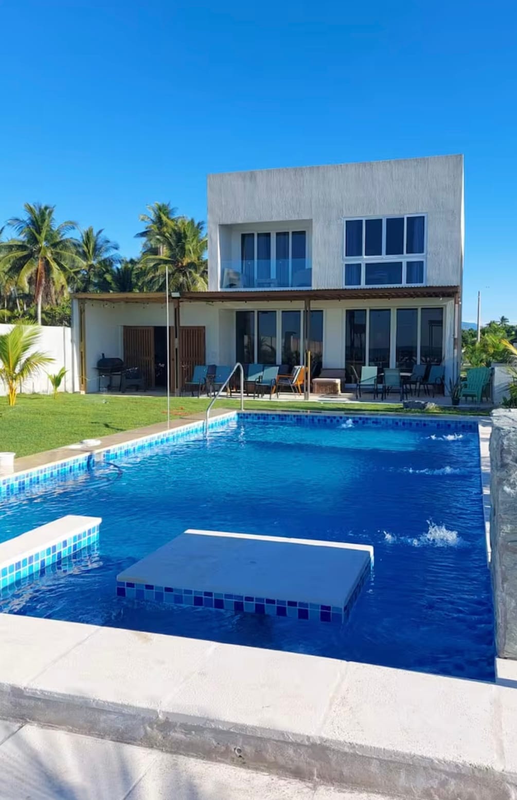 Casa nueva enfrente a playa Amatecampo, a tan solo 45 mins de San Salvador, esta bellísima casa cuenta con vista al mar, 4 habitaciones todas con AC, 5 baños, cocina completa, piscina privada, comedor para 14 personas, agua caliente, internet de alta velocidad, y barbacoa. ¡Ideal para toda la familia! Disfruta la vista de playa Amatecampo-Patio trasero seguro y espacioso ideal para mascotas y niños. Ven a disfrutar de los mejores atardeceres en el país en esta bella casa moderna frente de playa.