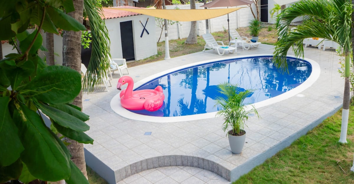 Stella Maris es la propiedad más grande en renta frente al mar en todo el litoral salvadoreño. Ideal para grupos familiares y amigos. Cuenta con cancha de basketball, área de juego para niños, barbacoa al aire libre, piscina amplia con un bar junto a la misma y cancha de volley. 80 metros de frente al mar Totalmente equipada, con Internet WiFi y dos televisoras con internet para que puedas acceder a Netflix. Con aire acondicionado en todas las habitaciones Ideal para eventos o paseos familiares