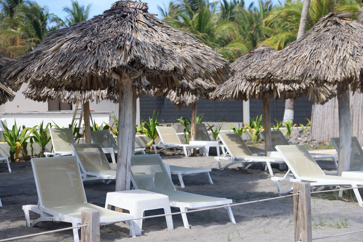 Ubicado en un paraíso tropical lleno de belleza y vegetación. Dentro de un complejo turísrico que tiene hotel, club de playa y restaurante. En una playa hermosa para disfrutar del mar y los mejores atardeceres