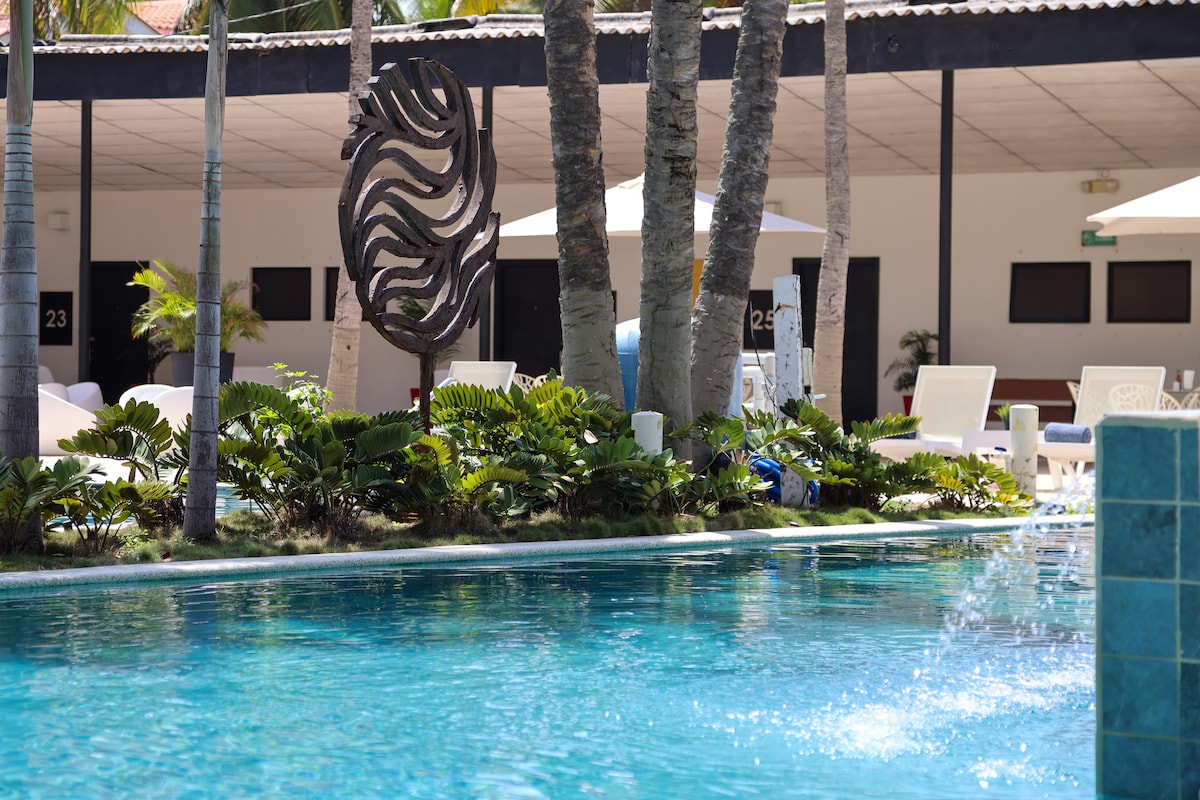 Descubre tu escapada perfecta en Playa Las Hojas, la joya más cercana al aeropuerto. Relájate en nuestra suite para 2 con aire acondicionado y baño peivado con acceso directo al mar, piscina y bar tropical. Disfruta sabores frescos en nuestro restaurante de mariscos y carnes, todo con atención de primer nivel.