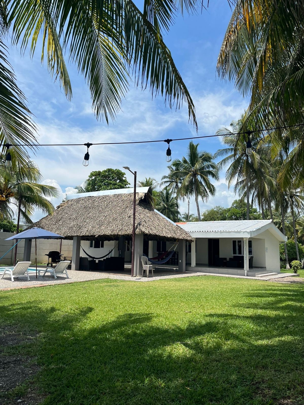 wdf2H Beautiful newly renovated beach house. Conveniently located only 35 min from the Airport. Pool, outdoor kitchen area air conditioning in all bedrooms. Property is located across the street from the Playa Costa Del Sol Beach. . Outdoor kitchen is equipped with gas and charcoal grills for outdoor entertainment. Main house has full kitchen with large refrigerator. Note: Base price includes 10 guests. Please include all your guests in your count to get the accurate pricing.