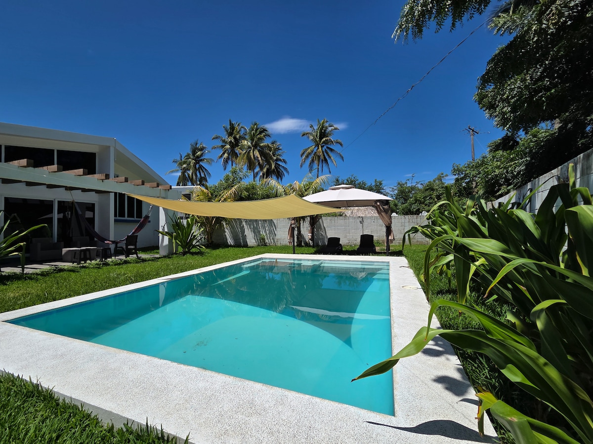 Beautiful and spacious beach house with a private pool located on one of the best beaches in El Salvador ( La Costa del Sol ). This home is open, bright and clean! A perfect space to enjoy with family or friends in addition to a backyard oasis featuring a Jacuzzi and LED lights when the night falls. Take advantage of the peaceful exterior of the house to unwind after a long day and listen to the relaxing sounds of the ocean nearby. Paradise awaits you!